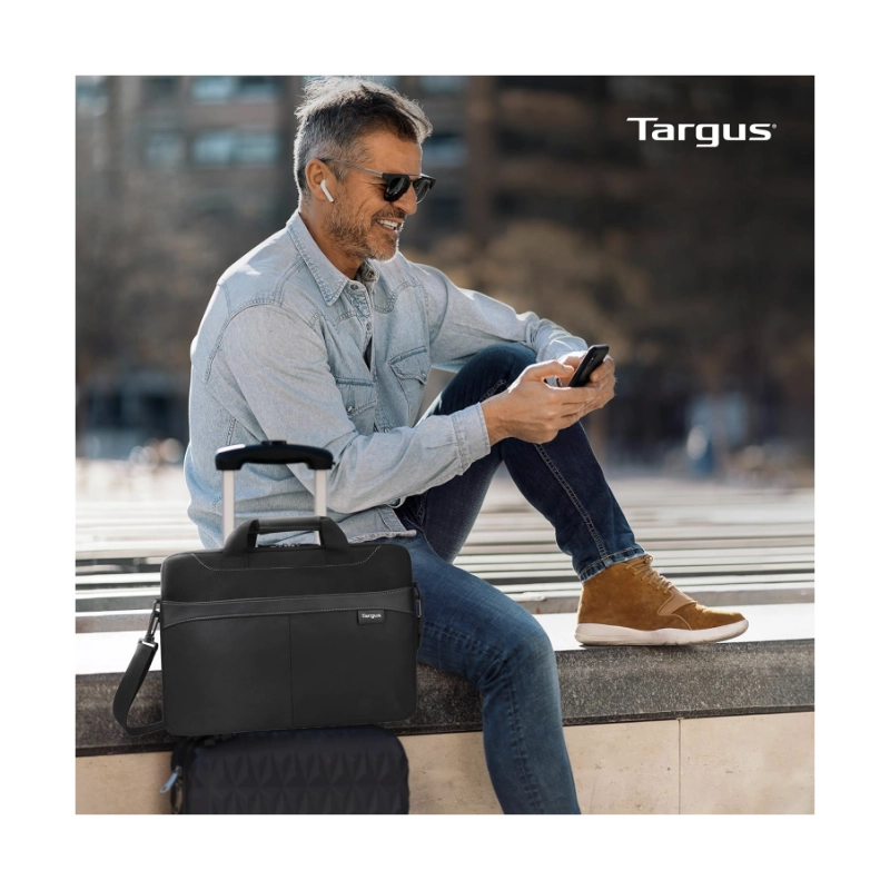 El maletín Business Casual de 15,6″ de Targus con correa extraíble para el hombro ofrece protección acolchada para su computadora portátil, almacenamiento optimizado y un diseño liviano y de perfil delgado. CORREA: Cómoda correa para trolley con cierre de velcro que se desliza en las bolsas con ruedas para facilitar el viaje. COMPARTIMIENTOS: El bolsillo frontal con cremallera guarda el cargador, el teléfono inteligente y otros accesorios. El compartimento acolchado para computadora portátil con separador de documentos se adapta a computadoras portátiles de hasta 15,6 pulgadas. |