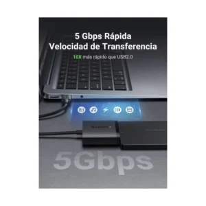 Adaptador De Sata A Usb Ugreen (60561) Negro, Usb 3.0, Para Sata 2.5, Soporta S.M.A.R.T, Trim
