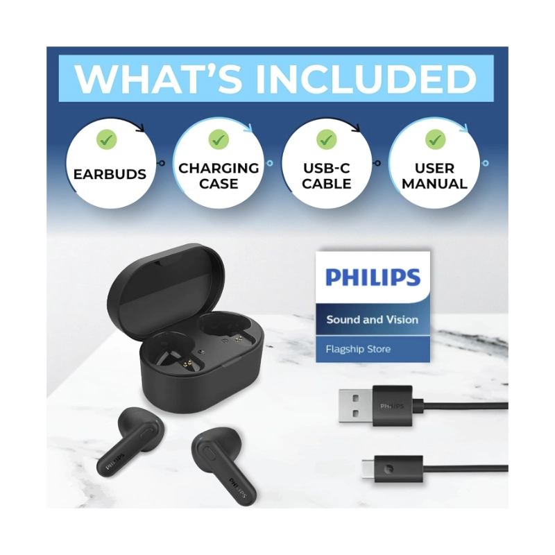 - Auricular Bluetooth Philips Wireless (Tat1138Bk/00) Negro, Microfono Ai Para Llamadas Claras, Ipx4 Impermeable, 15 Horas De Reproduccion
