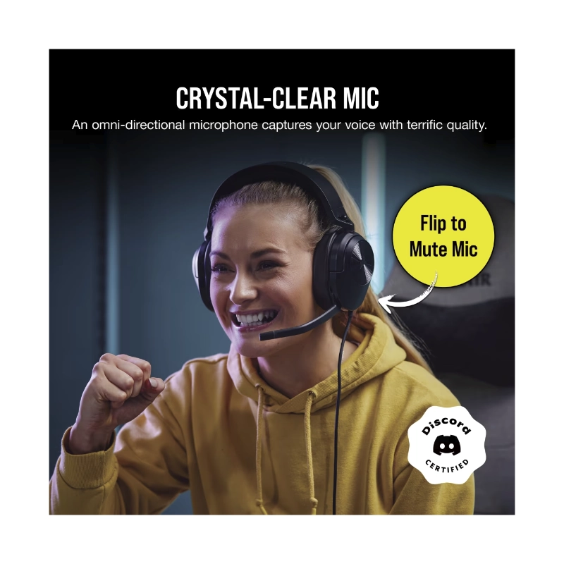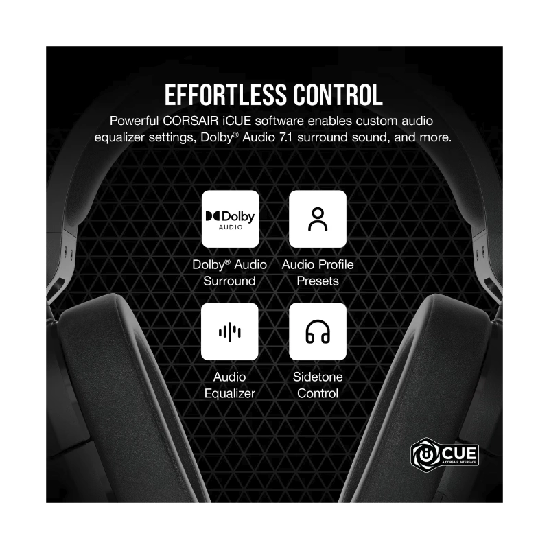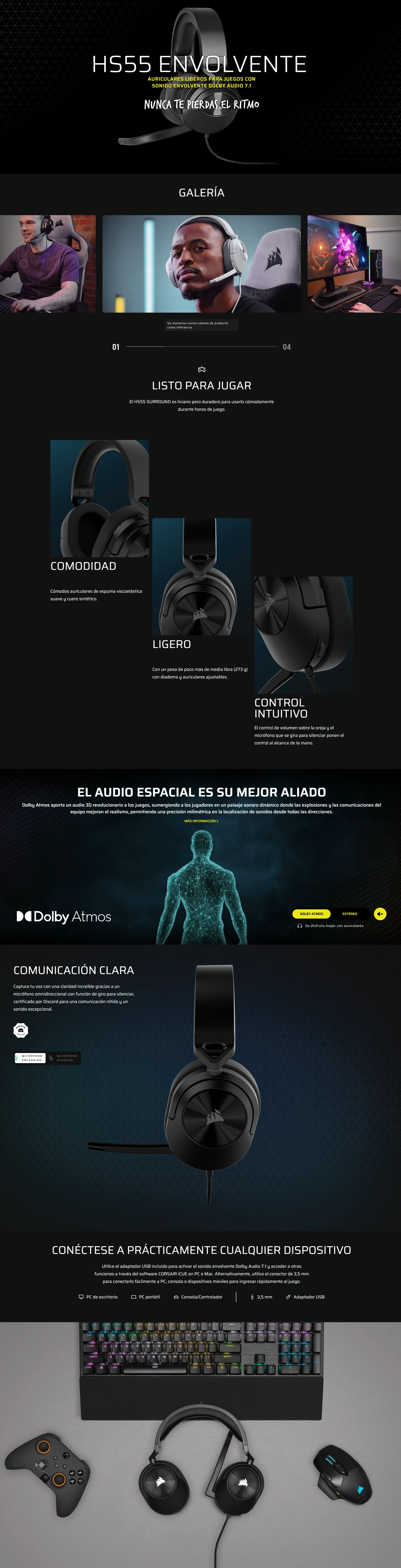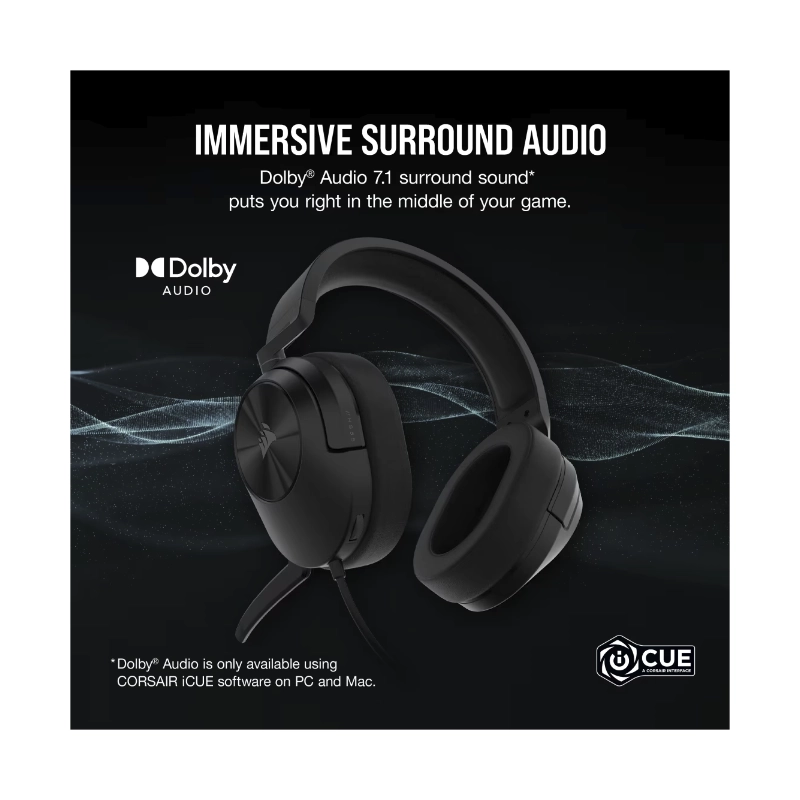 Auricular Corsair Hs55 Surround V2 (Ca-9011389-Ww) Gaming, Negro, Multiplataforma, Dolby Atmos, Microfono Omnidireccional, Ligero