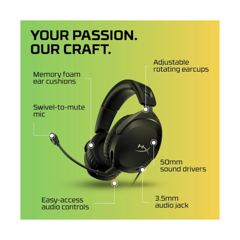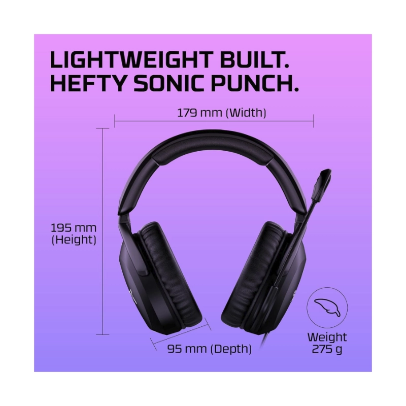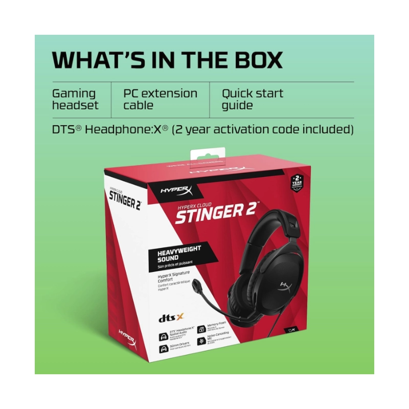 Auricular Hyperx Cloud Stinger 2 (519T1Aa) Negro, Ligeros, Con Microfono Giratorio Para Silenciar, Sonido Dts Spatial Audio