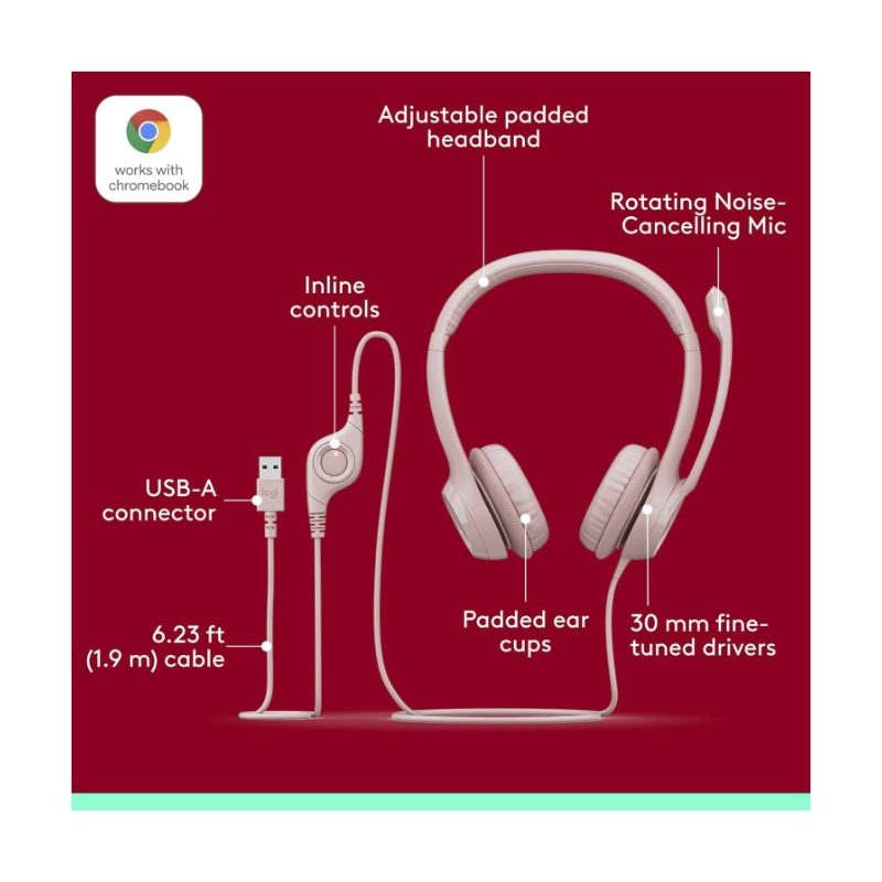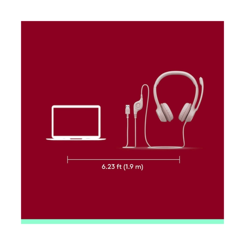 Auricular Logitech H390 (981-001280) Rosado, Microfono Con Cancelacion De Ruido, Conexion Usb