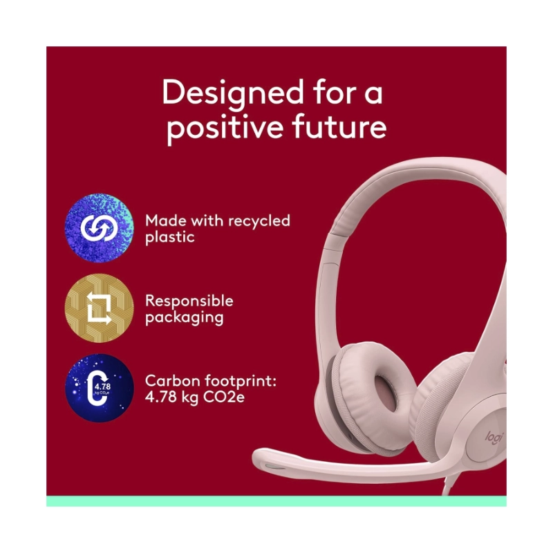 - Auricular Logitech H390 (981-001280) Rosado, Microfono Con Cancelacion De Ruido, Conexion Usb