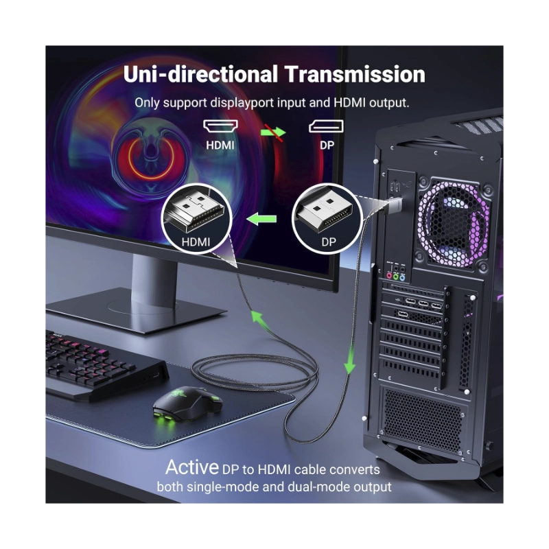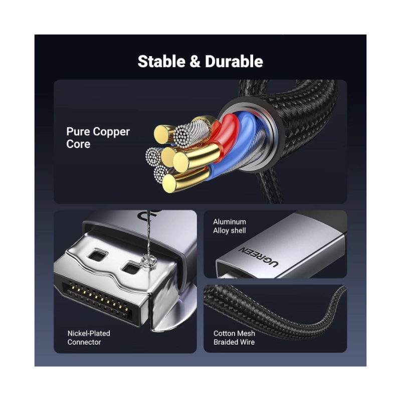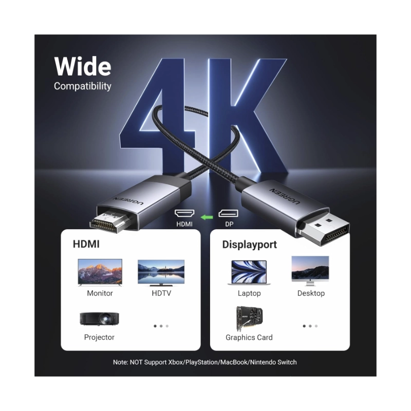 - Cable Dp A Hdmi Ugreen Dp119 (15773) Negro, 4K A 60Hz, Hdr Active Dp 1.2 A Hdmi 2.0, Cable Trenzado De Aluminio, 1 Metro