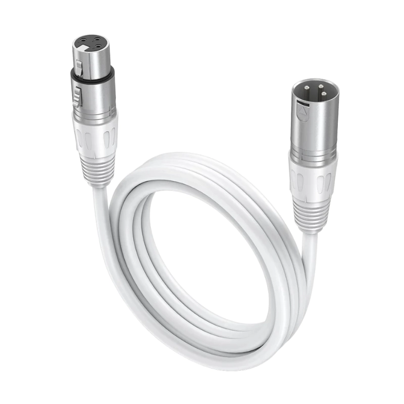 | Detalles | – Tipo de Cable: Cable de audio balanceado XLR de 3 pines (macho a hembra), diseñado para una transmisión de señal limpia y estable. – Longitud: 1,8 metros. – Color: Blanco. – Material: Cuenta con un núcleo de cobre libre de oxígeno para una conductividad excelente, y doble blindaje para reducir al máximo las interferencias. |