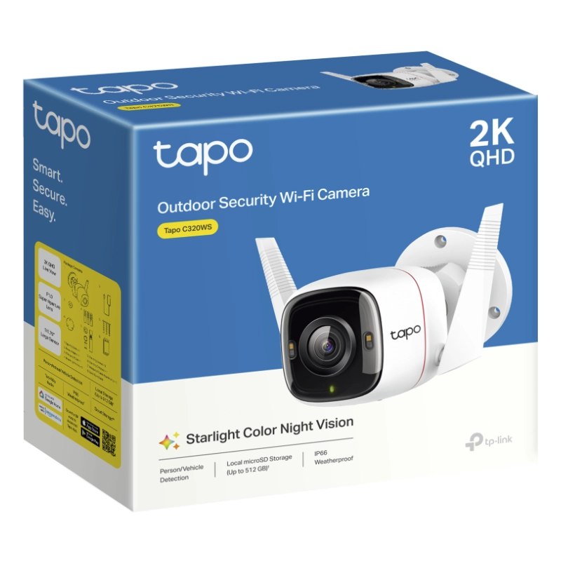 - Camara De Seguridad Inteligente Tp-Link (Tapo C320Ws) Wifi, Qhd 2K, Vision Nocturna A Color, Deteccion De Movimiento Ia, Sirena Integrada, Alexa Y Hom