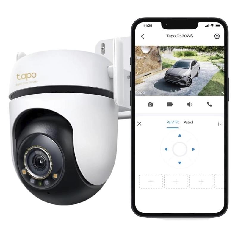 - Camara De Seguridad Inteligente Tp-Link (Tapo C530Ws) Wifi, 3K 5Mp, Vision Nocturna A Color, Deteccion De Movimiento Ia, Alarma Sonora/Luz