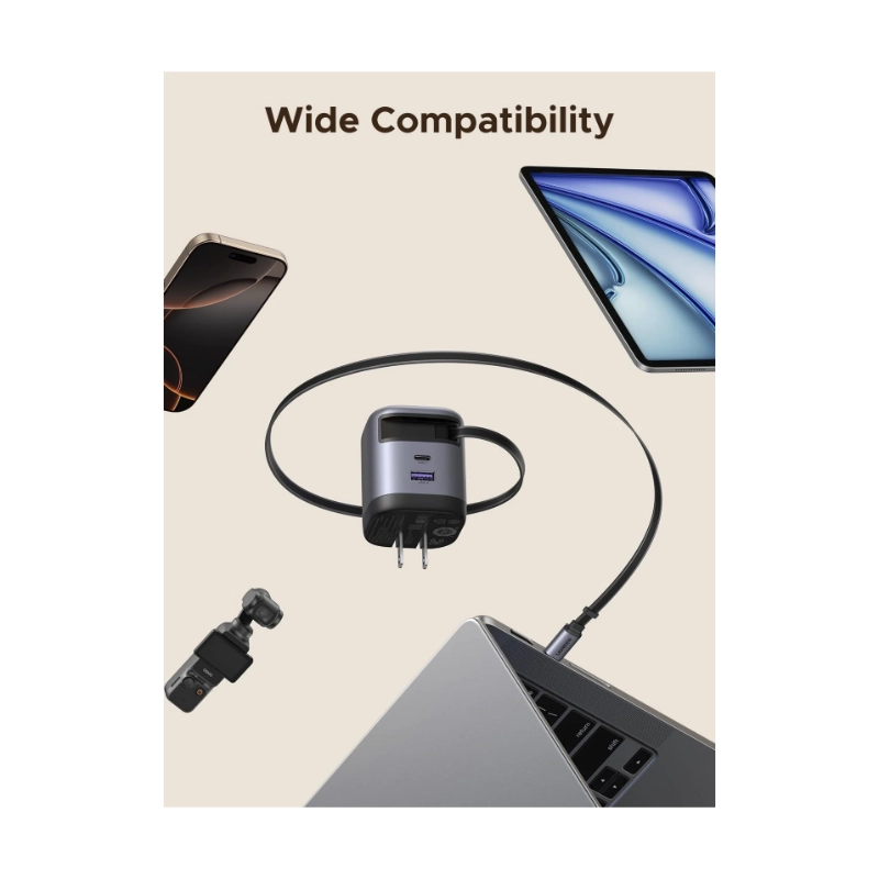 - Cargador De Pared Ugreen Nexode Pro X615 (65824) X1 Usb-C, X1 Usb-A, 65W Carga Rapida, Gan Pps, Con Cable Retractil