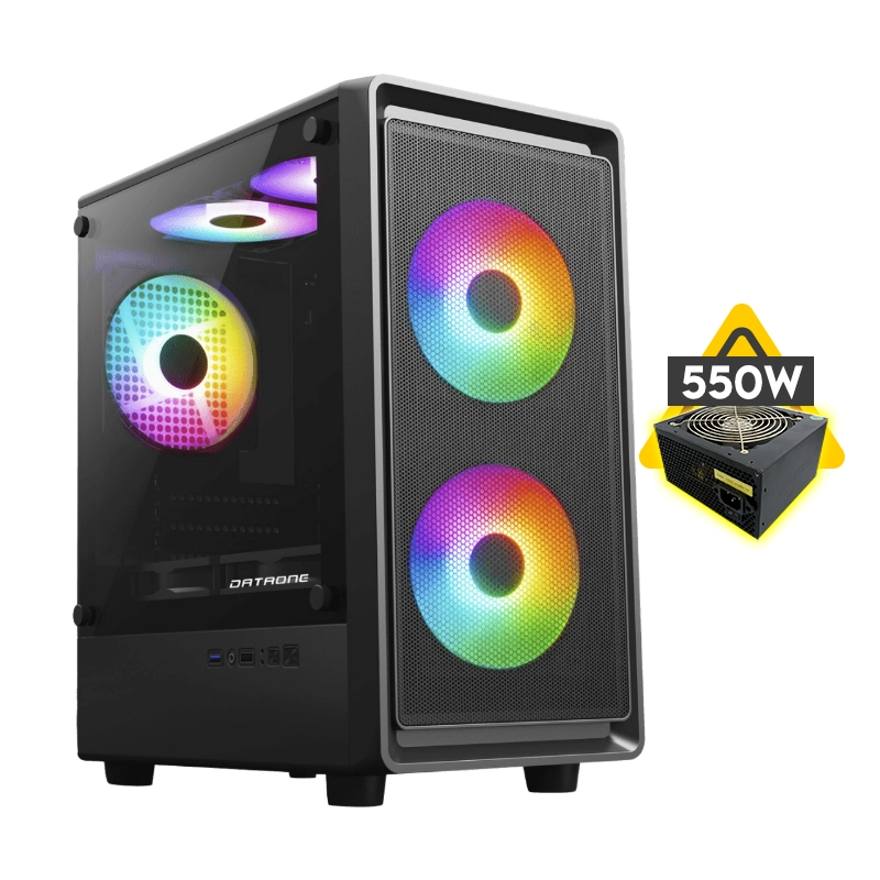 - Case Dataone (Luna Bp6) Fuente De 550W, Negro, Micro-Atx, 1 Panel Vidrio, X3 Fan, Led-Rgb