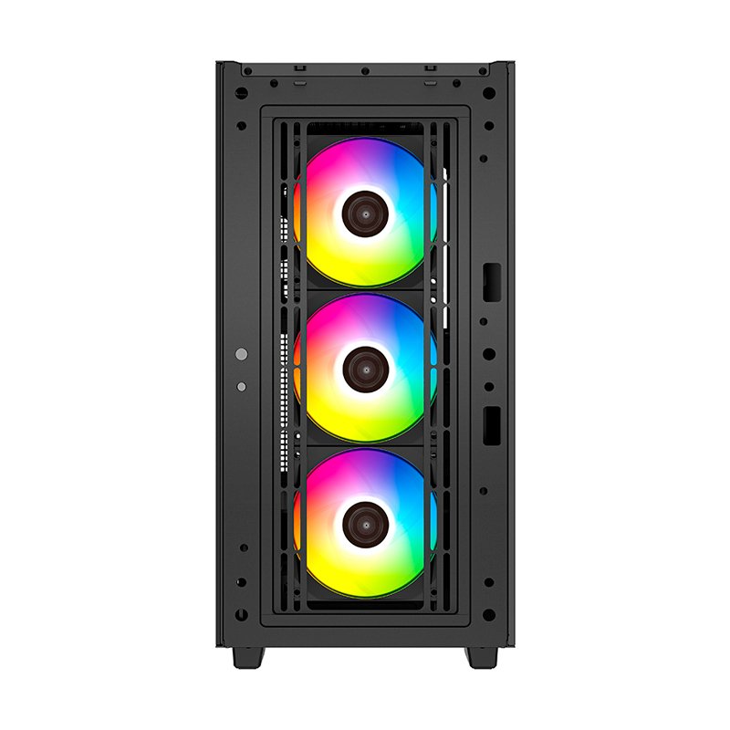 Tres ventiladores ARGB de 120 mm preinstalados en el frente iluminan a través del vidrio templado diseñado.