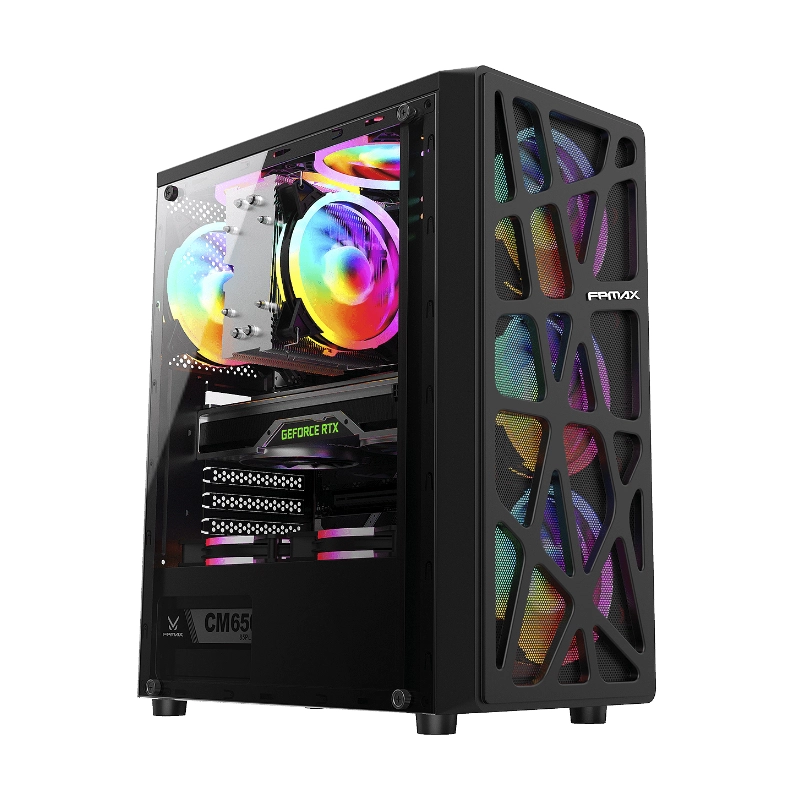 Case Fpmax (Cortex) Sin Fuente, Negro, Atx, 1 Panel Vidrio, X3 Fan, Led Rainbow