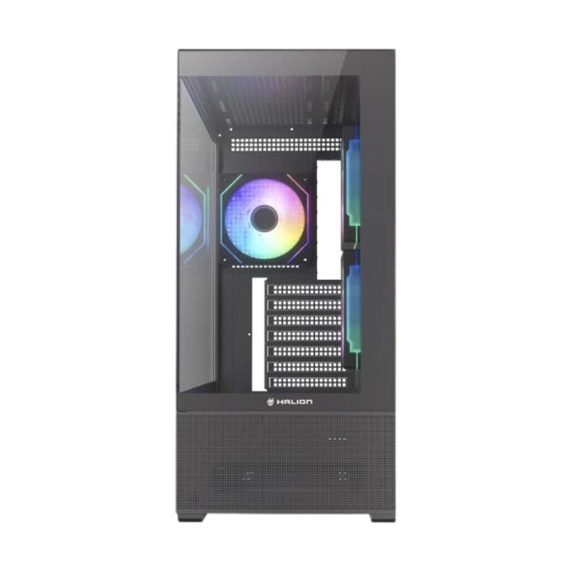 - Case Halion (Crystal 706B) Sin Fuente, Negro, Atx, 2 Panel Vidrio, X5 Fan, Led-Argb