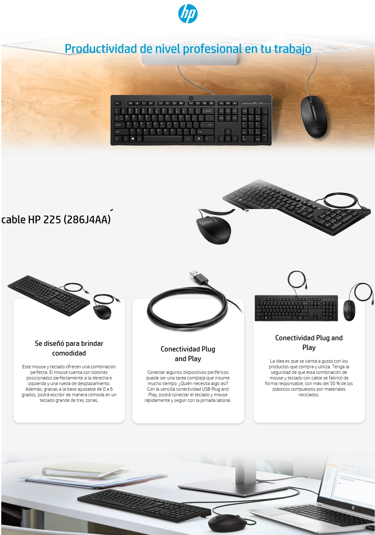 - Combo Hp 225 (Ax2Y7Aa#Abm) Teclado+Mouse