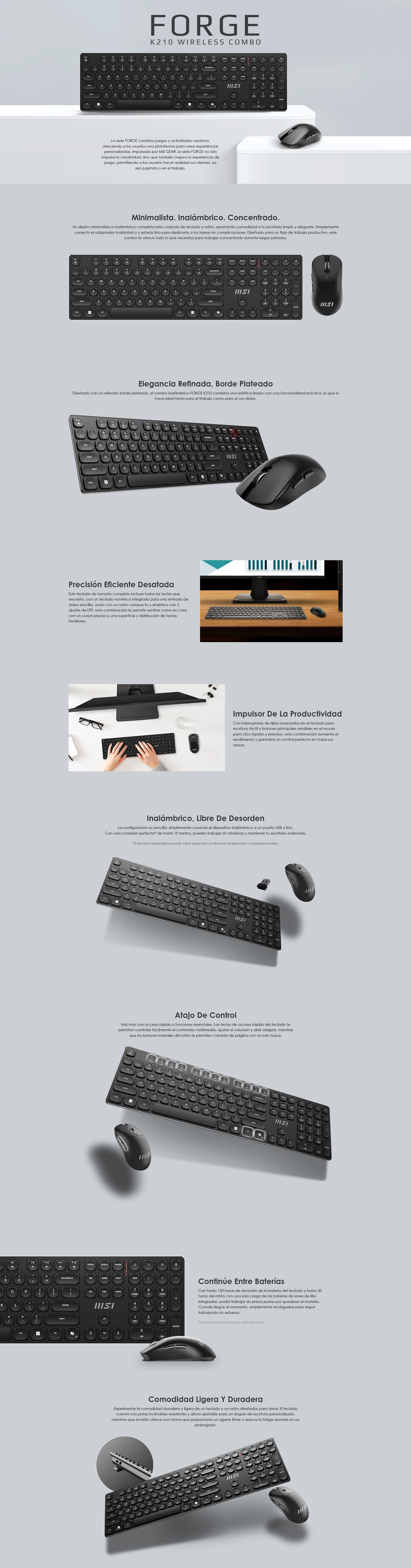 Combo Inalambrico Msi (Forge K210 W Combo Ls) Bateria Recargable, Hasta 1600 Dpi, Teclado+Mouse