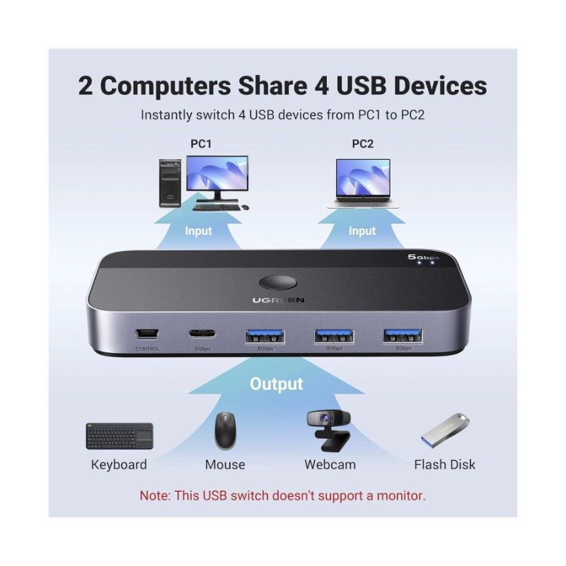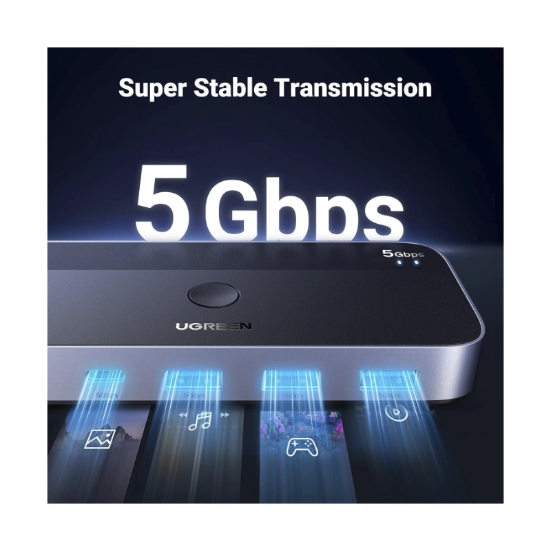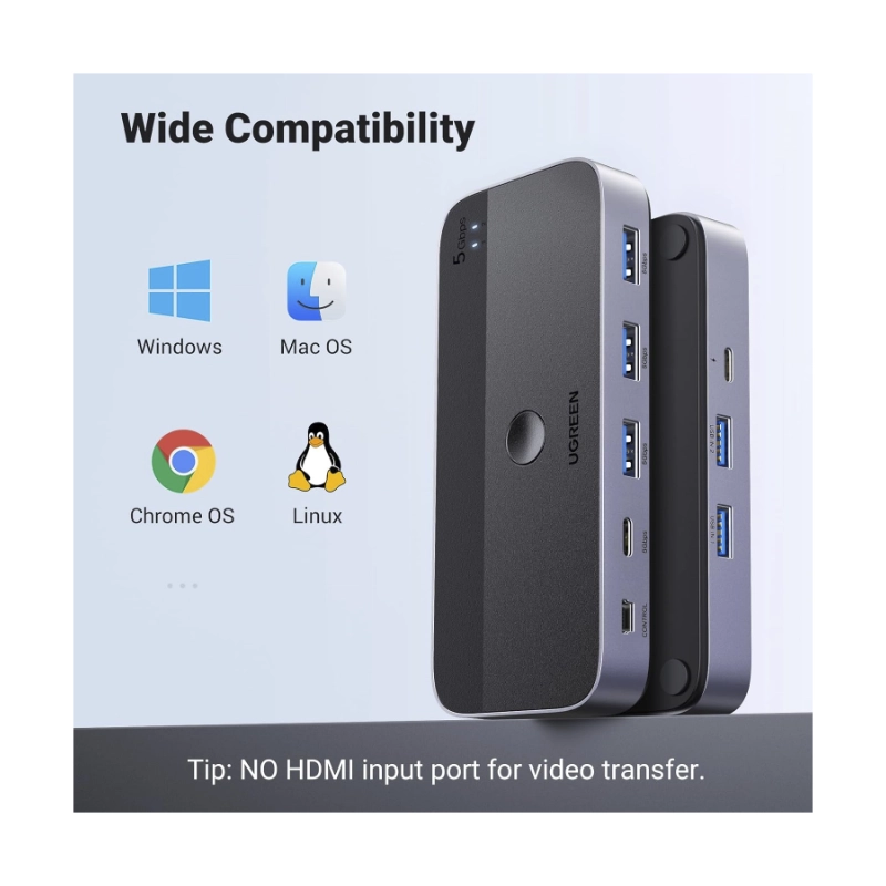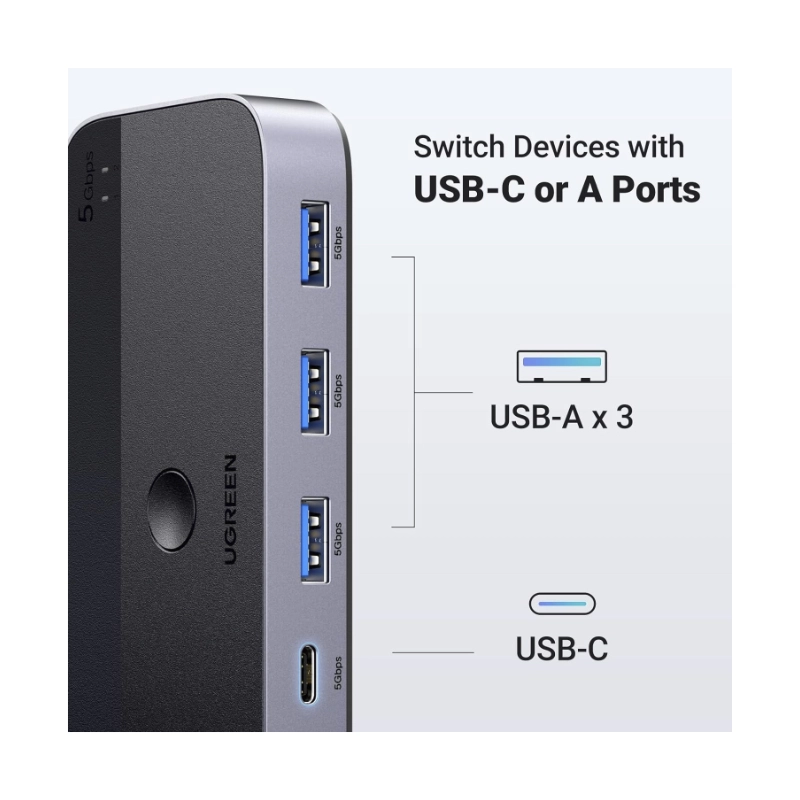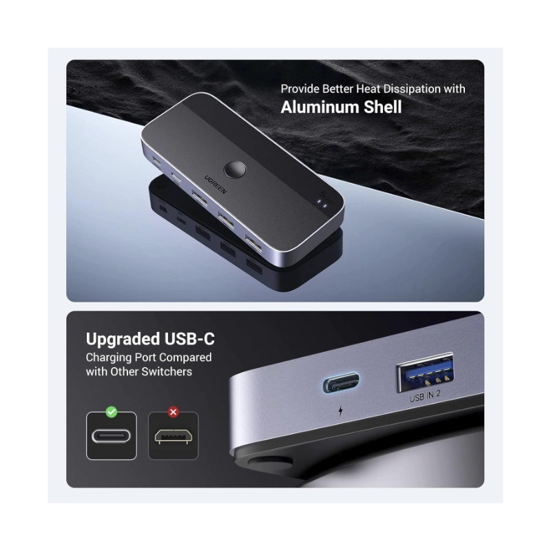 - Conmutador Usb 3.0 Ugreen Cm662 (15705) 2 Computadoras Que Comparten Dispositivos Usb C Y A, Usb De 4 Puertos Para Compartir Teclado/Mouse/Camara/Etc