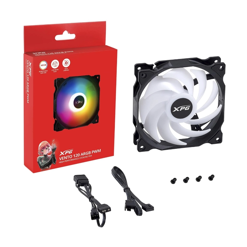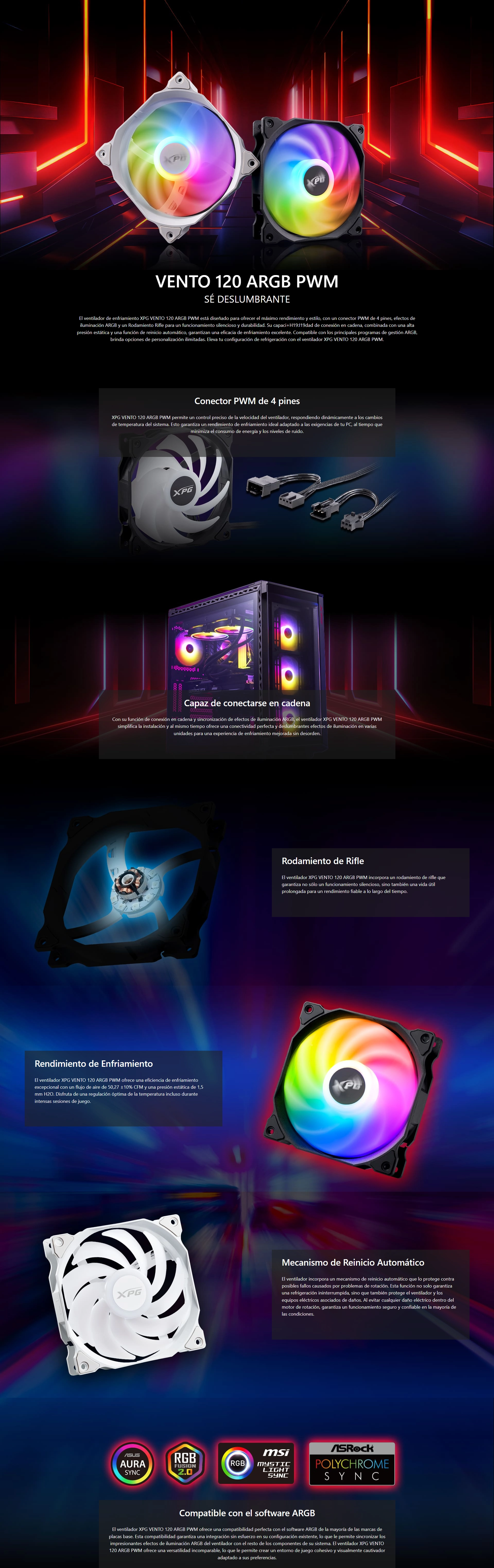 - Cooler Para Case Xpg Vento 120 Argb Pwm (Vento120Argbpwm-Bkcww) Negro, 120Mm, Conector 4 Pines (Pwm), Led-Argb