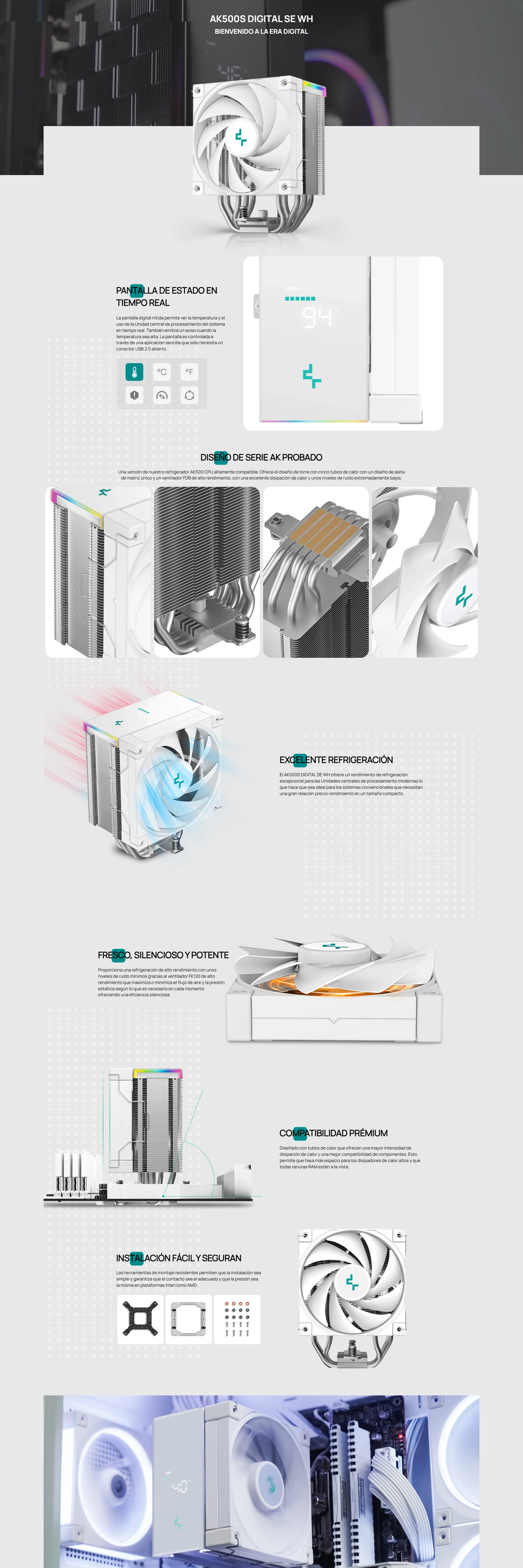 - Disipador De Procesador Deep Cool Ak500S Digital Se Wh (R-Ak500S-Whadmn-Gjd) 1155/1851-Am4/Am5, Blanco
