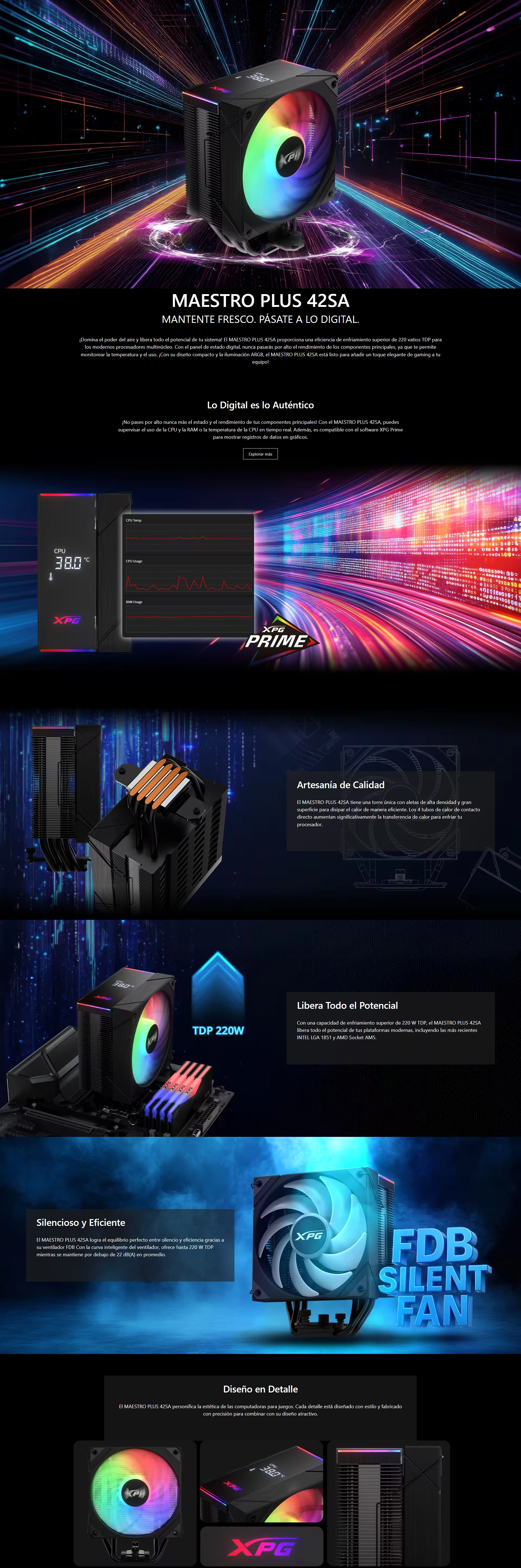- Disipador De Procesador Xpg Maestro Plus 42Sa (Maestroplus42Sa-Bkcww) 1156/1851-Am3/Am4/Am5, Negro, Pantalla Digital, 4 Tubos De Calor