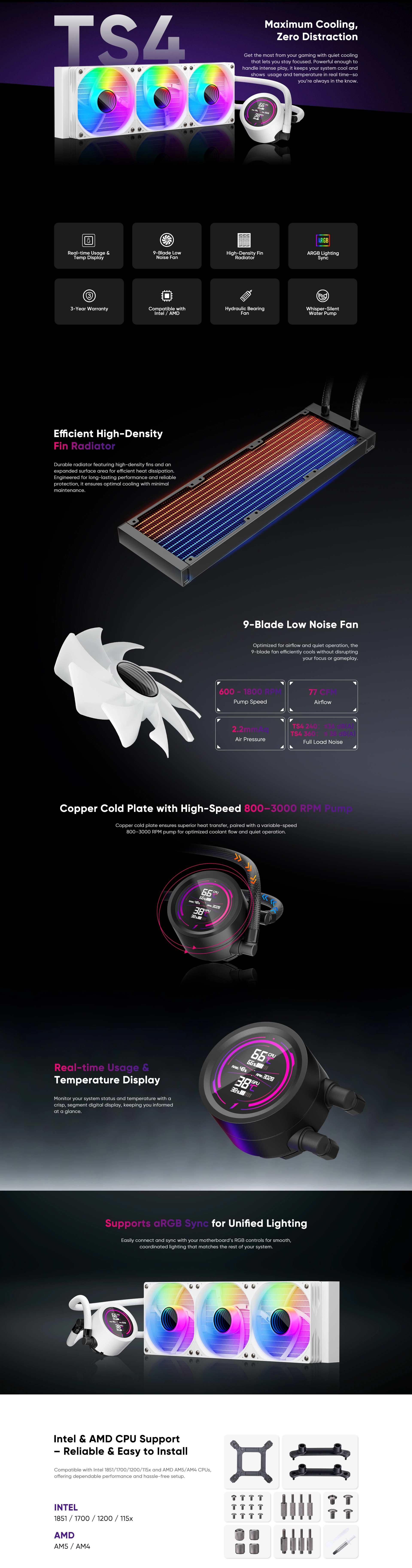 - Enfriamiento Liquido 1Stplayer Thunderstorm Ts4 240 (Ts4-240-Bk) Negro, 1150/1851-Am4/Am5, X2 Fan, Visualizacion De Temperatura, Led-Argb