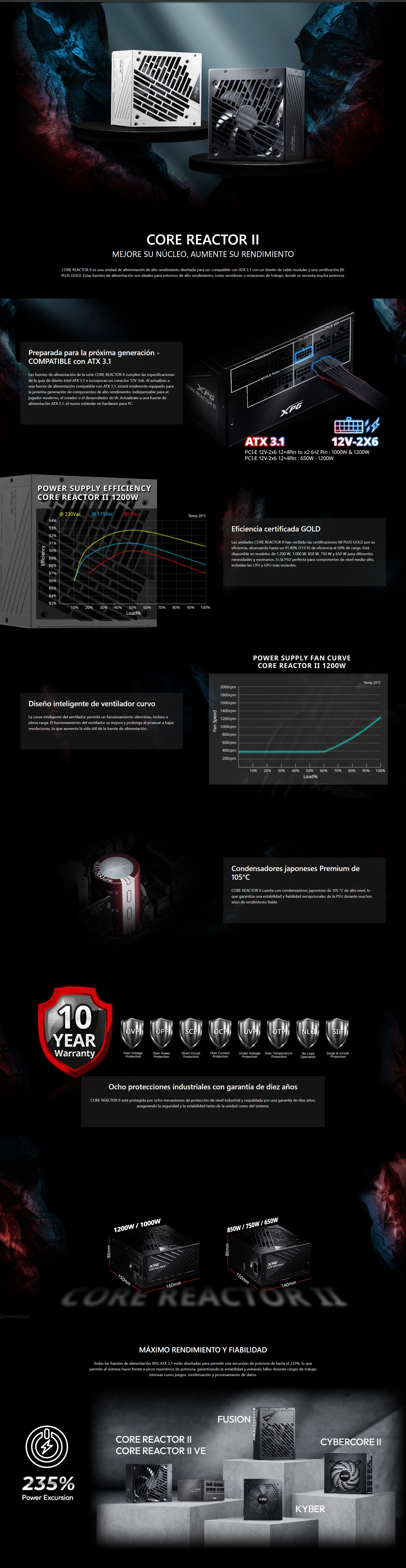 - Fuente De Poder Xpg Core Reactor Ii (Corereactorii1200G-Bkcus) 1200W, Gold, Pcie Gen 5.1, Atx3.1, Modular