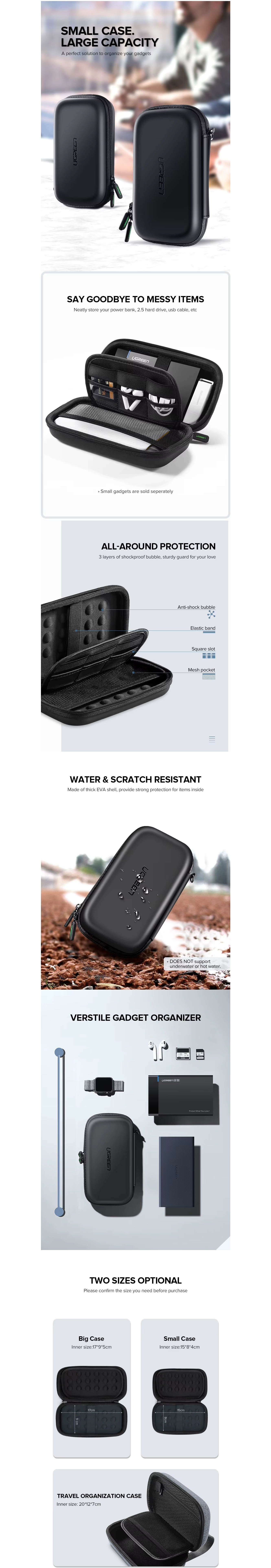 - Funda Para Disco Duro Externo Ugreen (50274) 2.5 Pulgadas, Large Size, 18 X 9.5 X 5.5 Cm, Accesorios Electronicos, Bolsa Impermeable