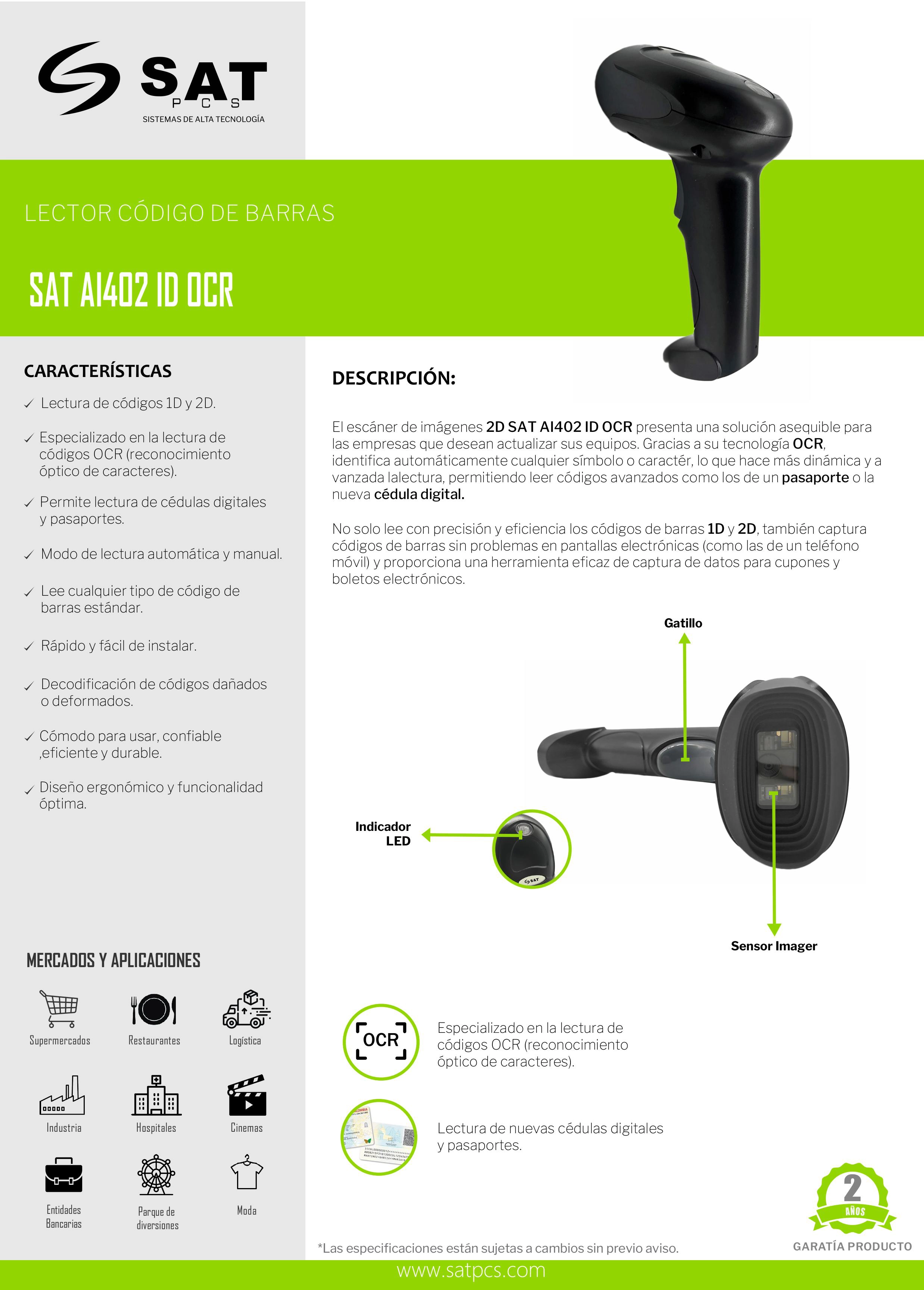 | Modelo | SAT AI402 ID OCR |
