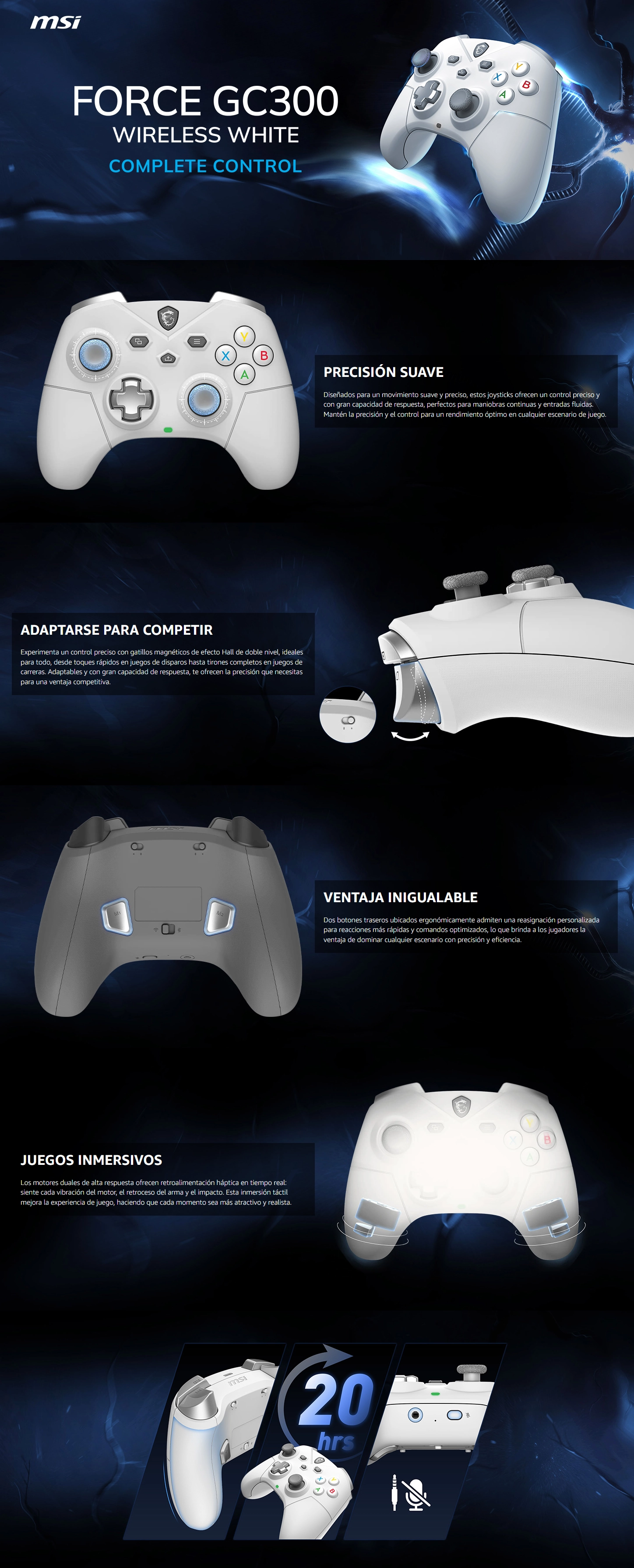 Mando Inalambrico Msi (Force Gc300 W White) Blanco, Doble Vibracionn, Bluetooth, Para Pc/Android