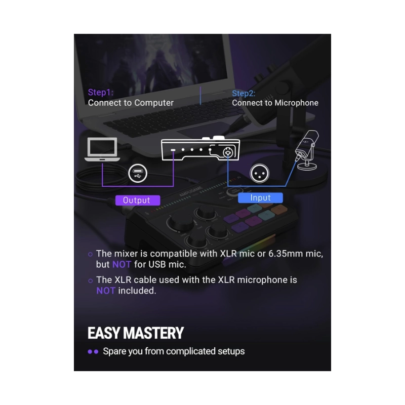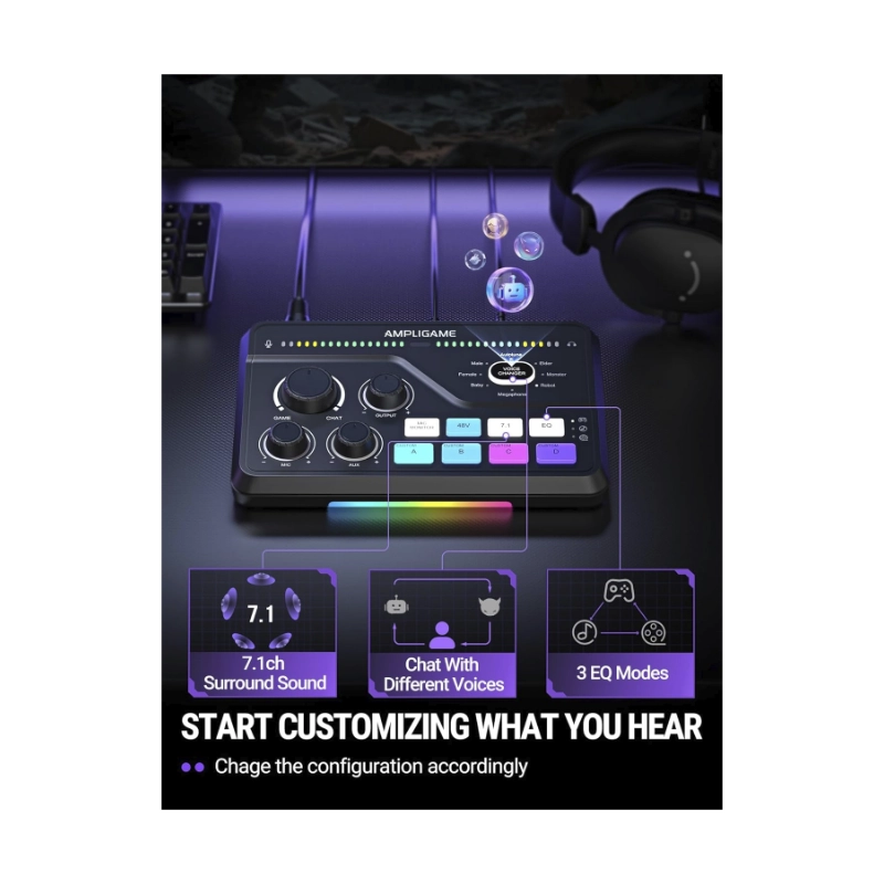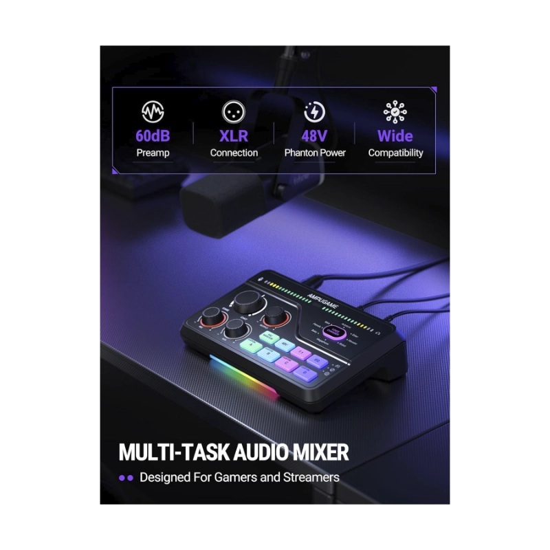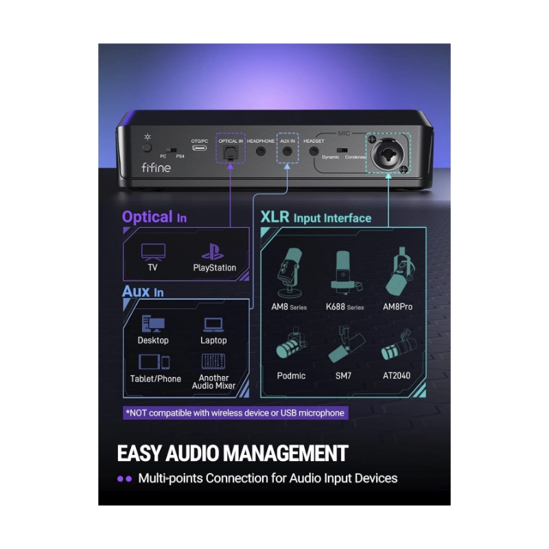 - Mezcladora De Audio Fifine Sc8 Ampligame (Sc8-B) Negro, Para Jugadores Y Streamers, Efectos De Audio Personalizables, Admite Xlr, Mezcla De Juego/Chat