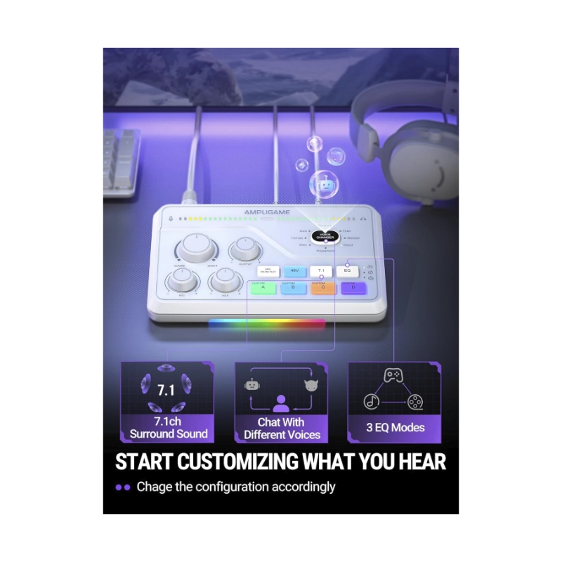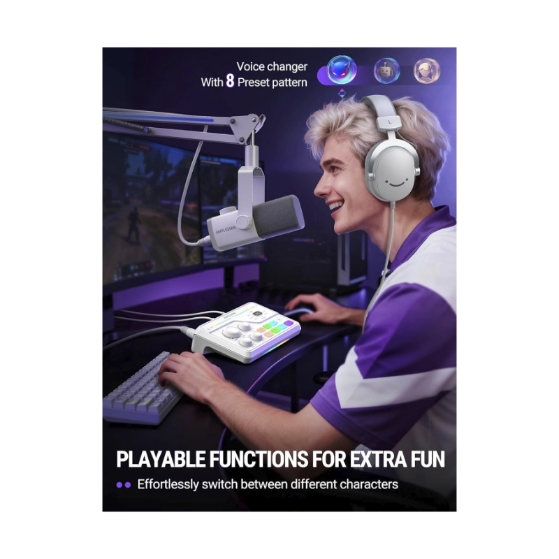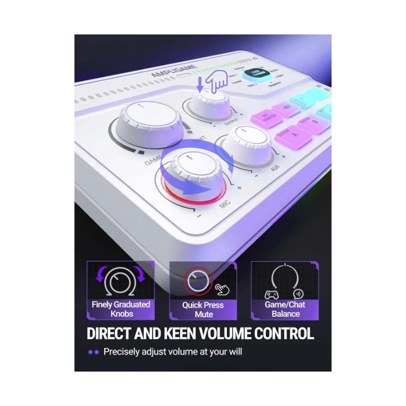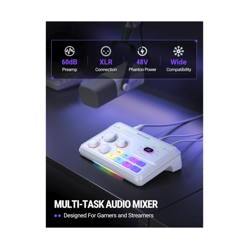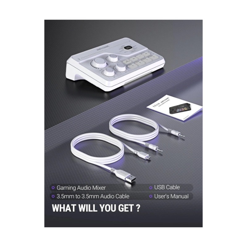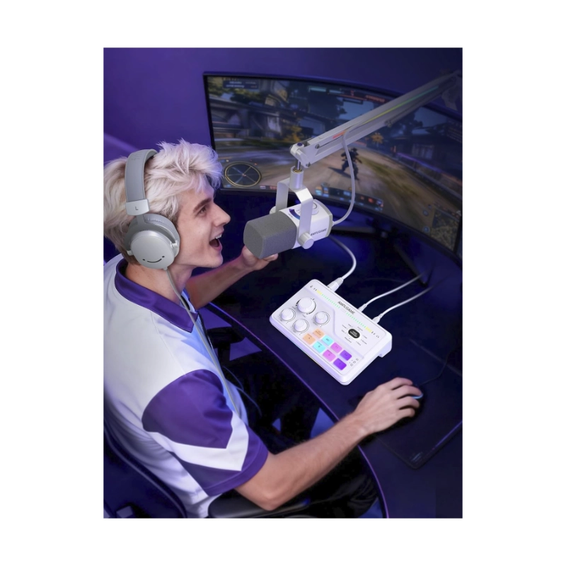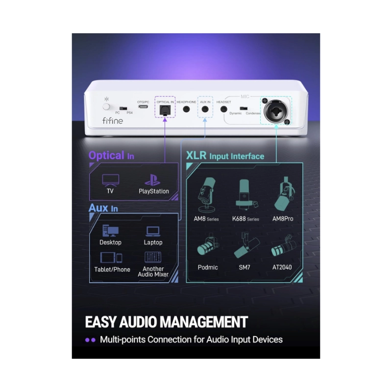 - Mezcladora De Audio Fifine Sc8 Ampligame (Sc8-W) Blanco, Para Jugadores Y Streamers, Efectos De Audio Personalizables, Admite Xlr, Mezcla De Juego/Cha