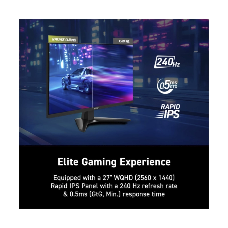 Monitor Gaming Msi 27″ (Mag 274Qf X24) Fast Ips, Wqhd 2K, 2560 X 1440, 2 Hdmi/Dp, 0.3Ms, 240Hz, Sincronizacion Adaptativa, Ai Vision