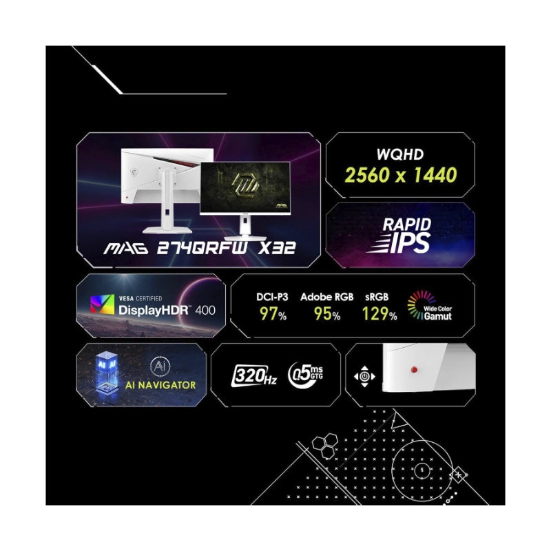 Monitor Gaming Msi 27″ (Mag 274Qrfw X32) Blanco, Fast Ips, Wqhd 2K, 2560 X 1440, 2 Hdmi/Dp, 0.5Ms, 320Hz, Sincronizacion Adaptativa, Ai Vision