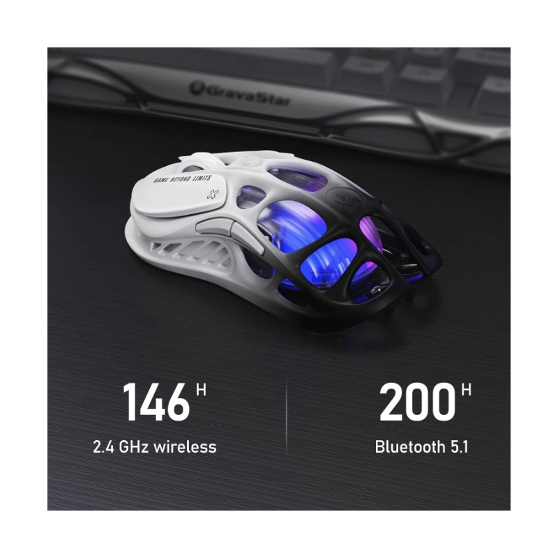 Mouse Inalambrico Gravastar Mercury M1 Pro (Gravastar M1 Pro-Gblk) Negro Degradado, 26000 Dpi, Aleacion De Magnesio Ligera, Sensor Paw3395Dm, Led-Rgb