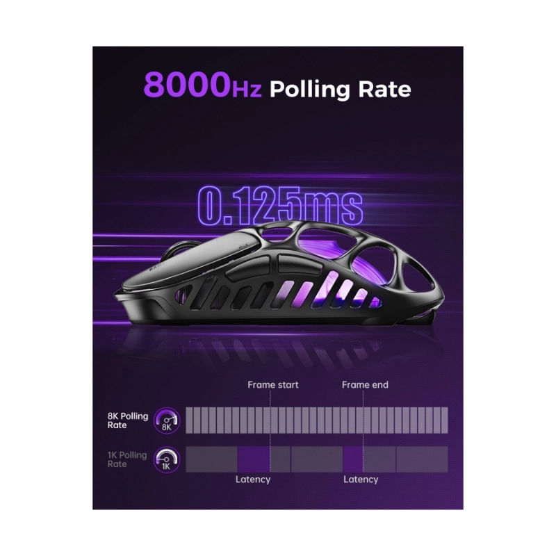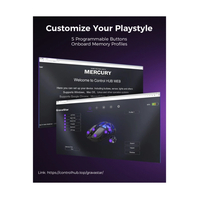- Mouse Inalambrico Gravastar Mercury X Pro (Gs Xpro-Blk) Negro, 32000 Dpi, Dongle De 8 K, Sensor Paw 3950, Sondeo De 8,000 Hz, 5 Botones Programables