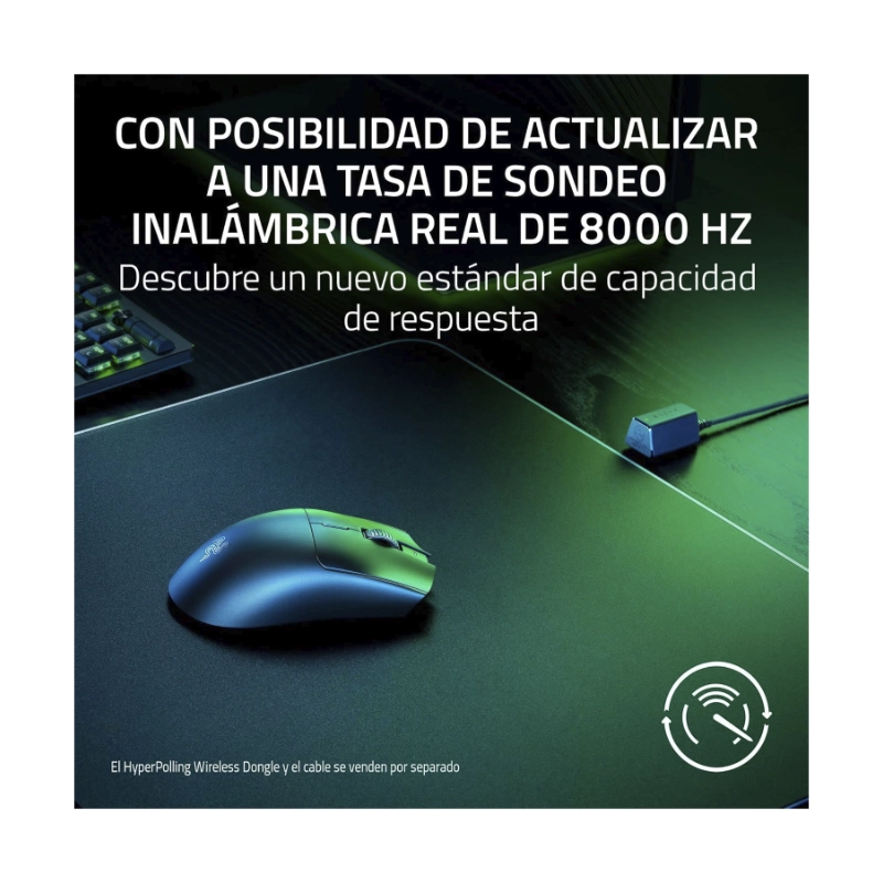 Actualizable a tasa de sondeo inalámbrica 8000 HzExperimenta el rendimiento inalámbrico más rápido con el Razer HyperPolling Wireless Dongle*. |