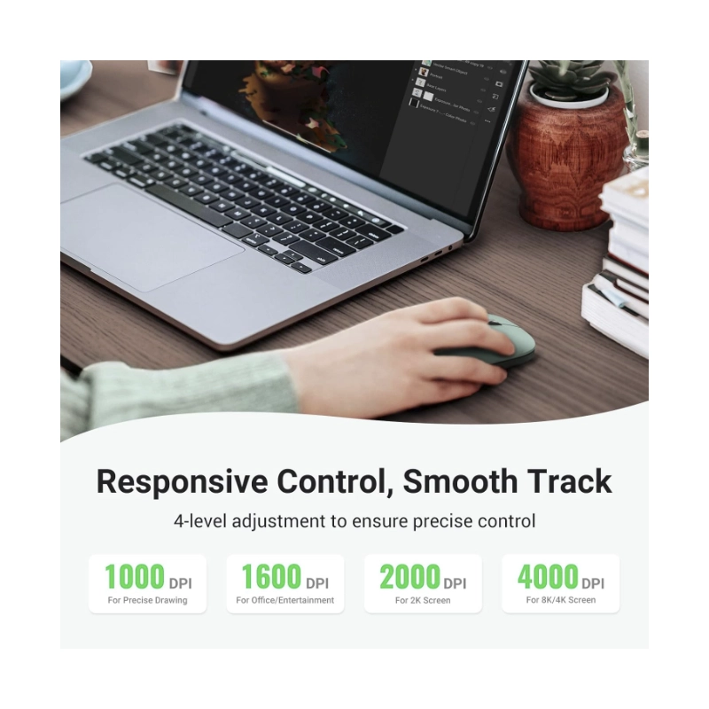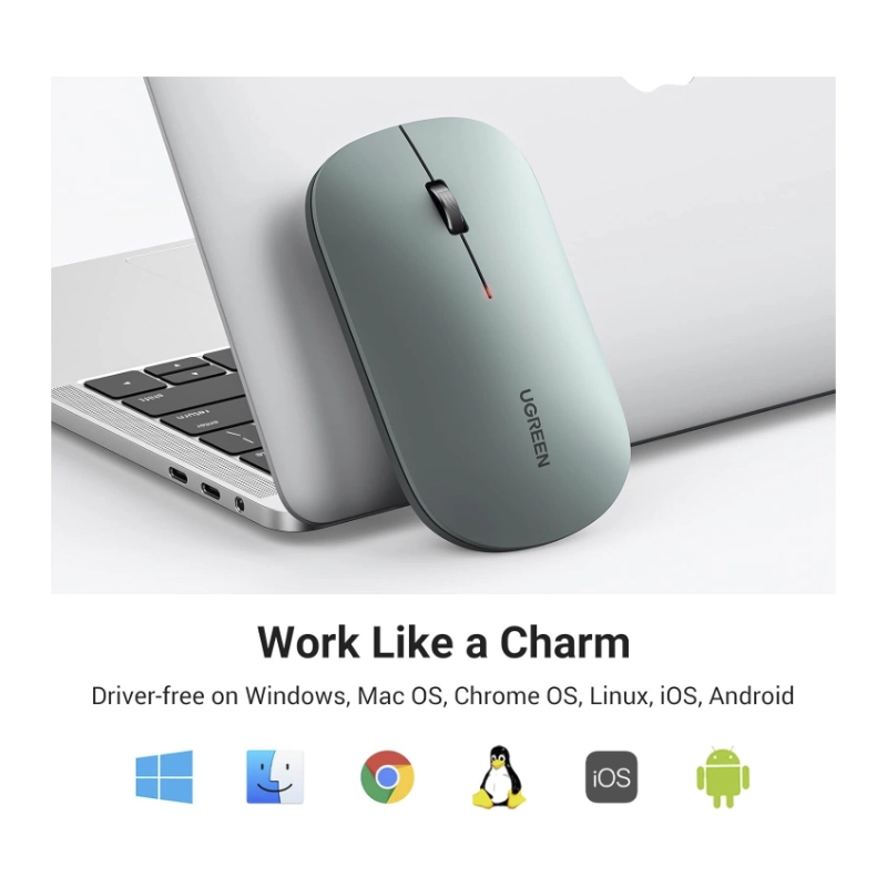 - Mouse Inalambrico Ugreen Mu001 (90374) Verde, Ultra Delgado, 4000 Dpi