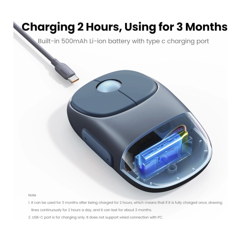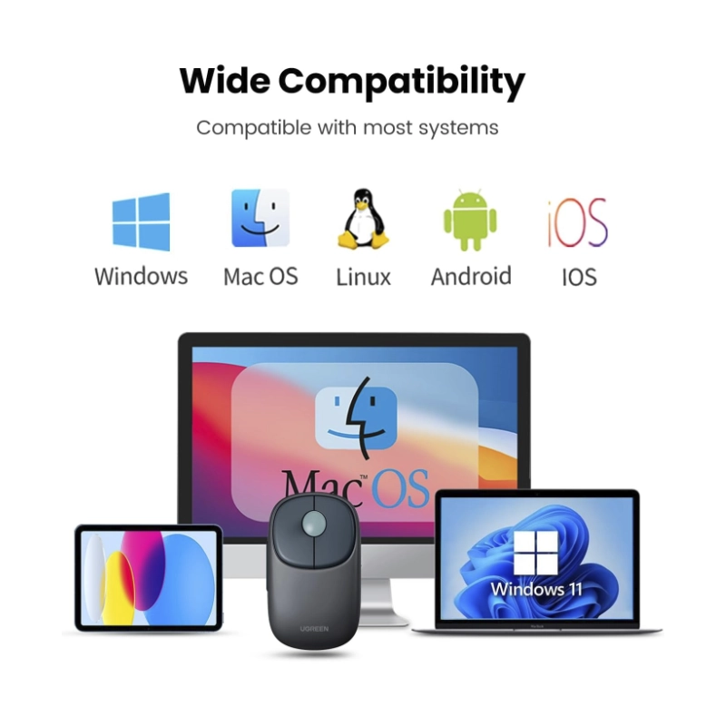 - Mouse Inalambrico Ugreen Mu102 (90538) Gris, Click Silencioso, Recargable, 5 Botones, 4000 Dpi, Bluetooth