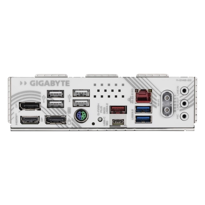 | Puertos de E/S posteriores | 1 puerto HDMI (Nota) 2 DisplayPorts (Nota) 1 botón Q-Flash Plus 1 puerto PS/2 para teclado/mouse 1 puerto USB 3.2 Gen 2 Tipo A (rojo) 1 puerto USB Tipo C, compatible con USB 3.2 Gen 2 2 puertos USB 3.2 Gen 1 4 puertos USB 2.0/1.1 1 puerto RJ-45 2 conectores de antena (2T2R) 3 conectores de audio |