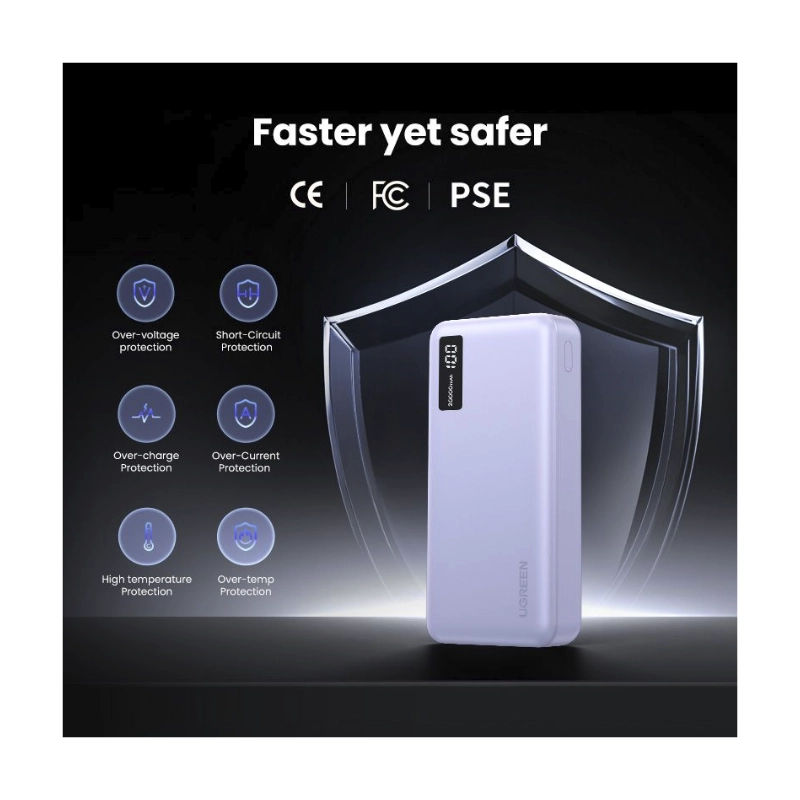 - Power Bank Ugreen Pb312 (65590B) Morado, Pantalla Digital, Carga Rapida De 20 W, 20000Mah