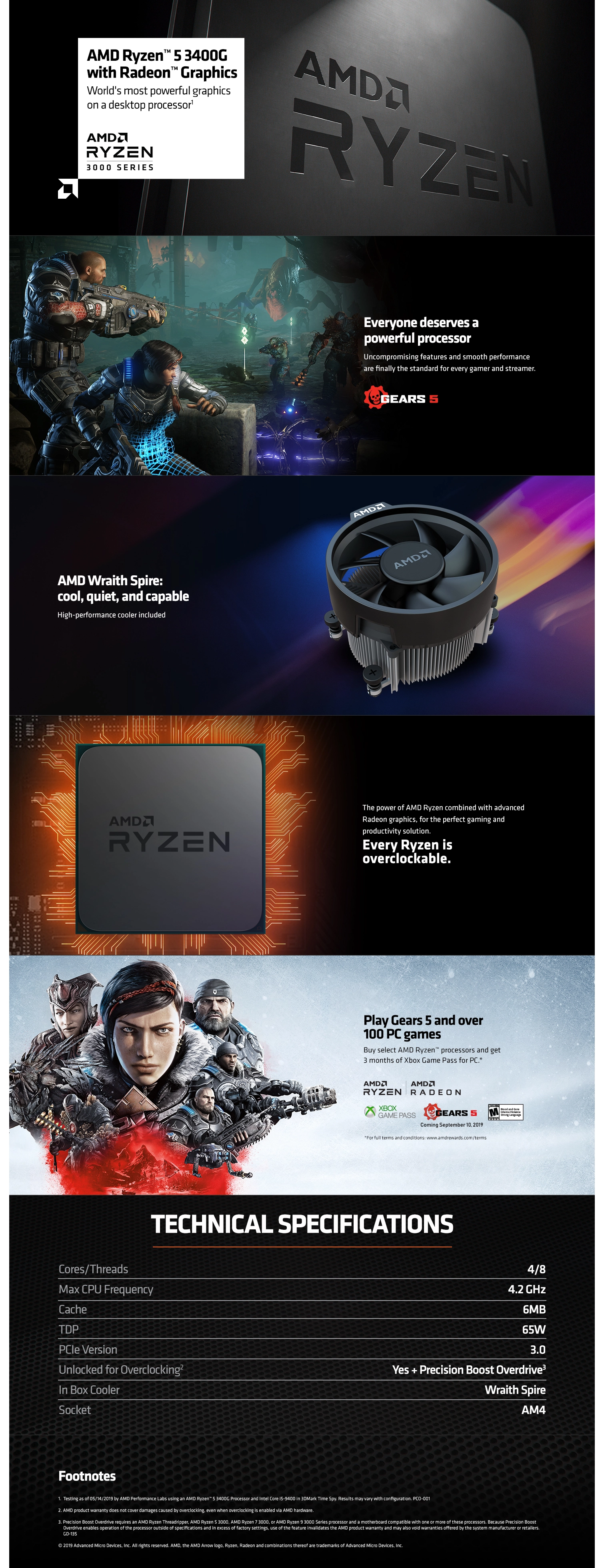 Procesador Amd Ryzen 5 3400G (Yd3400C5Fhsbx) 4.2Ghz, 6 Mb Cache, Am4