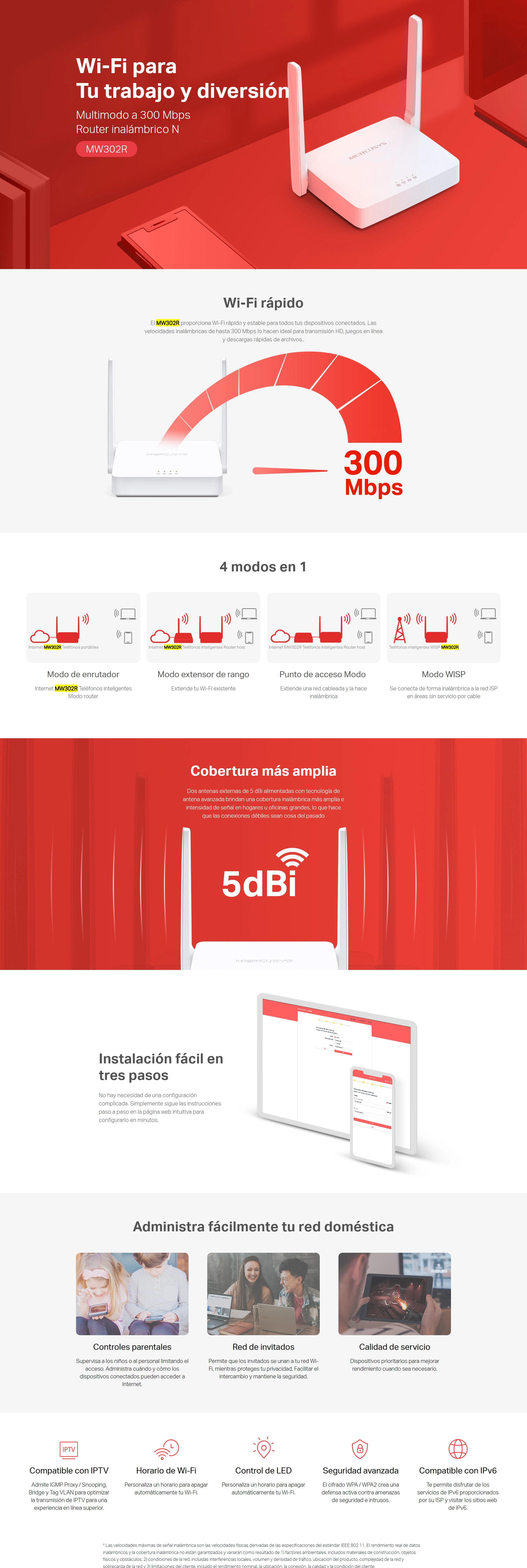 - Router Inalambrico Mercusys Multimodo N (Mw302R) 2.4Ghz/300Mbps, Antena X2, Port X2 Lan 10/100, Port X1 Wan 10/100Mbps