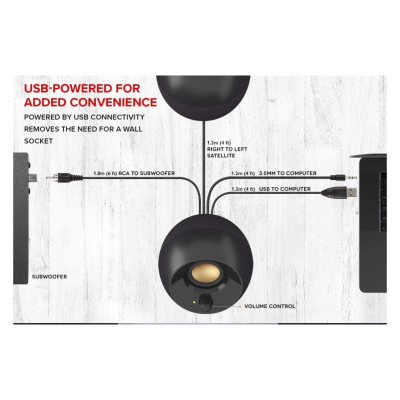 ¿Quieres aún más volumen? Si estás usando el Pebble Plus con un modelo antiguo de ordenador/portátil que está en USB 2.0, conecta el Pebble Plus a un enchufe de pared con un adaptador USB de 5V 2A (no incluido). El adaptador USB de 5V 2A te permite lograr la máxima salida RMS* de 8 W, por lo que obtendrás un audio más fuerte y potente del Pebble Plus para una experiencia de audio completa.