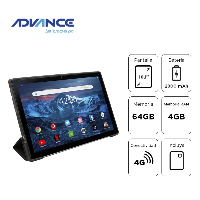 Tablet Hyundai Advance Smartpad (Sp5706) Pantalla Ips Wxga 10.1″, 64Gb Rom, 4Gb Ram, 8000Mah, Android 13 , 4G Lte, Cam 5Mp-2Mp