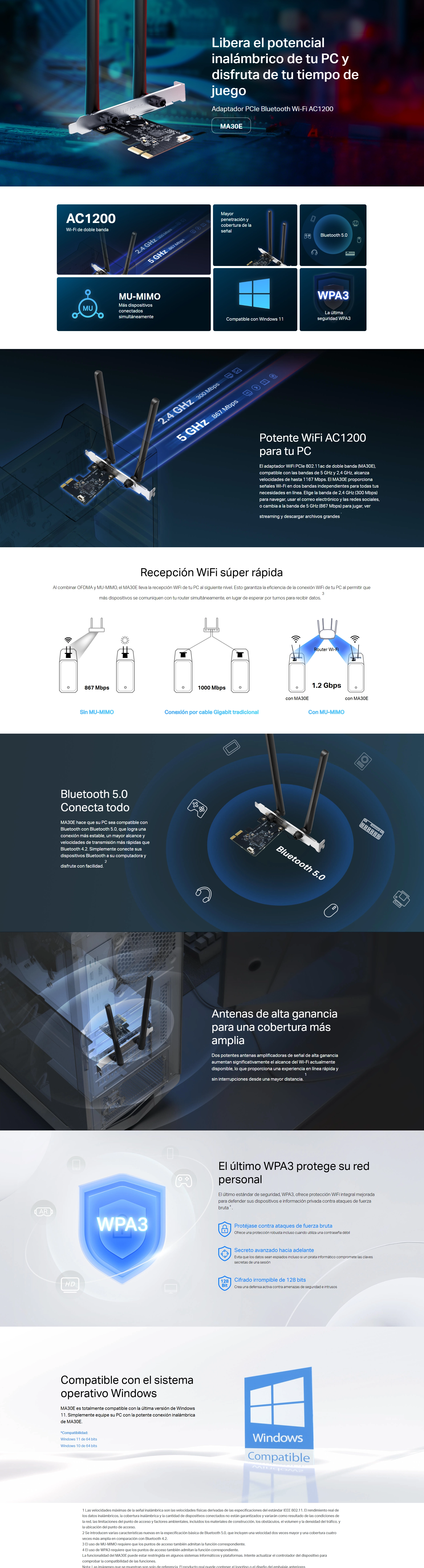 - Tarjeta Pcie Inalambrico + Bluetooth 5.0 Mercusys Ac1200 (Ma30E) 2.4Ghz/300Mbps, 5Ghz/867Mbps, Antena X2, Mu-Mimo, Wpa3