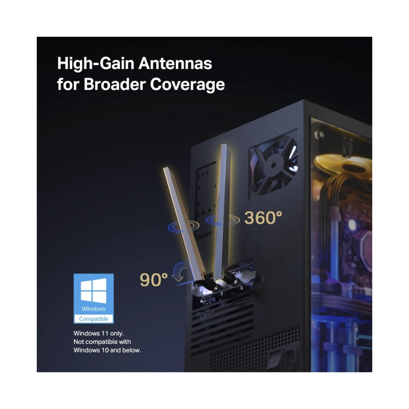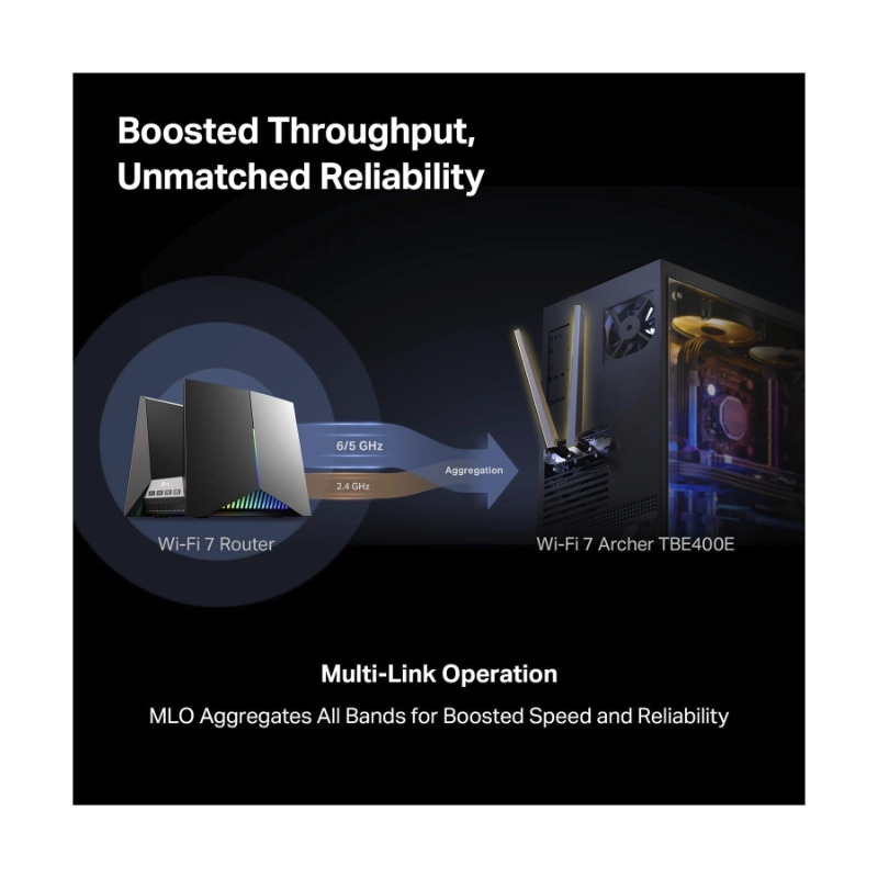 - Tarjeta Pcie Inalambrico + Bluetooth 5.4 Tp-Link Be6500 (Archer Tbe400E) Wifi 7, Tri-Band, 2.4Ghz/688Mbps, 5Ghz/2880Mbps, Antena X2, Mlo, Wpa3
