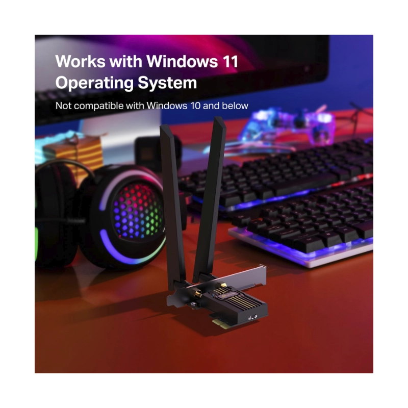 Tarjeta Pcie Inalambrico + Bluetooth 5.4 Tp-Link Be6500 (Archer Tbe400E) Wifi 7, Tri-Band, 2.4Ghz/688Mbps, 5Ghz/2880Mbps, Antena X2, Mlo, Wpa3