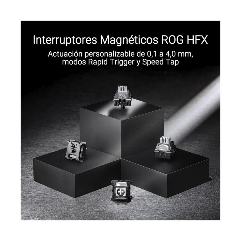 Interruptores Magnéticos ROG HFXLos últimos interruptores magnéticos prelubricados de ROG están diseñados para ofrecer una sensación sólida con un rendimiento ultrarrápido y ultrapreciso y una vida útil de 100 millones de pulsaciones. *Mantén el ROG Falchion Ace HFX alejado de objetos magnéticos cuando lo utilices. Si surge algún problema, retira los elementos magnéticos y vuelve a conectar el teclado. |