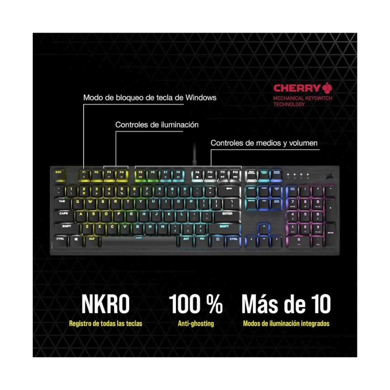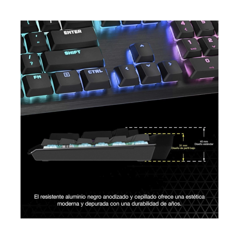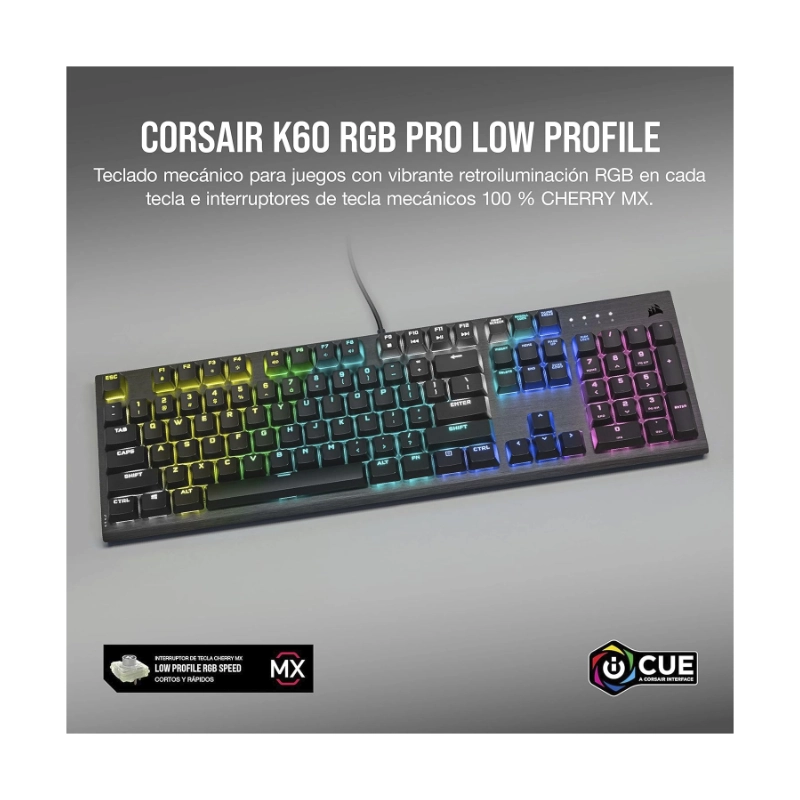 - Teclado Corsair K60 Pro Low Profile (Ch-910D018-Sp) Gaming, Negro, Mecanico, Switch Cherry Mx Low Profile Speed, Estructura De Aluminio, Led-Rgb