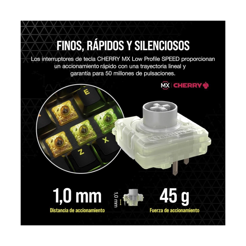 DELGADO Y RÁPIDOMANTÉN UN PERFIL DISCRETOInterruptores CHERRY para juegos, diseñados y fabricados en Alemania. |