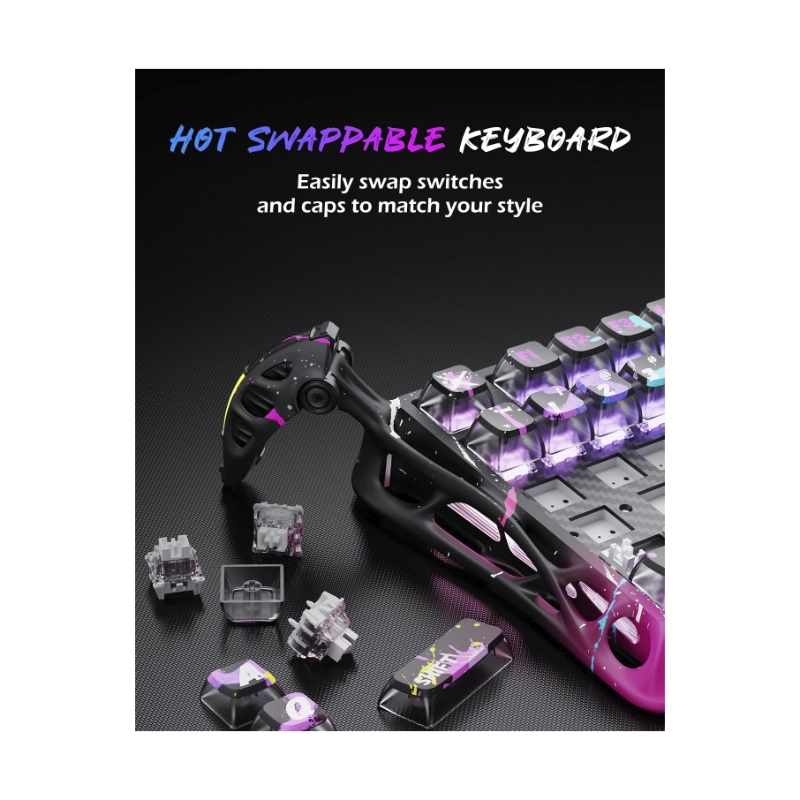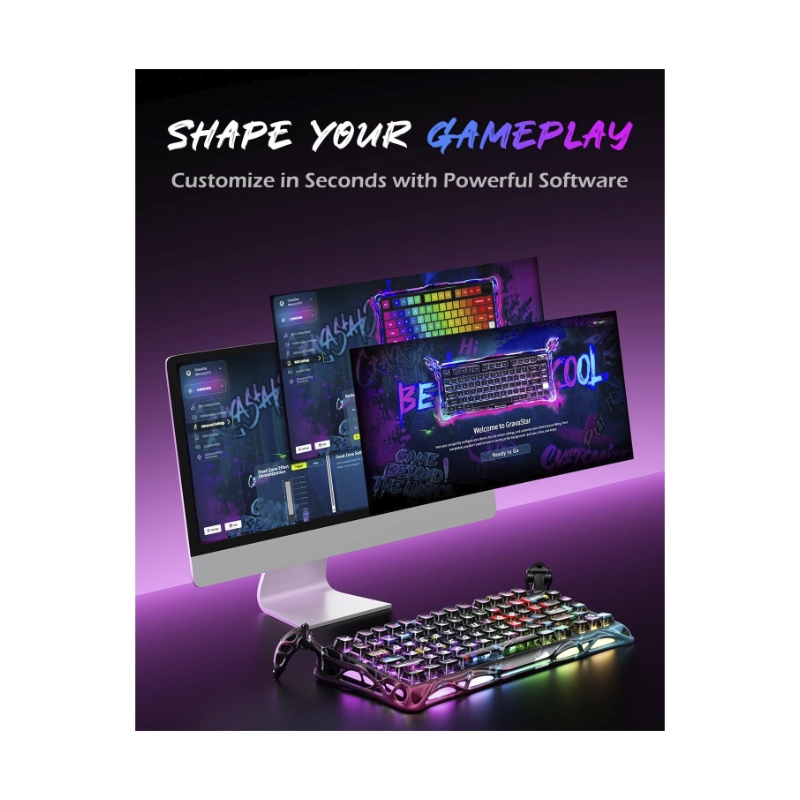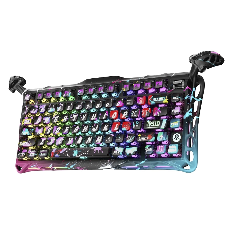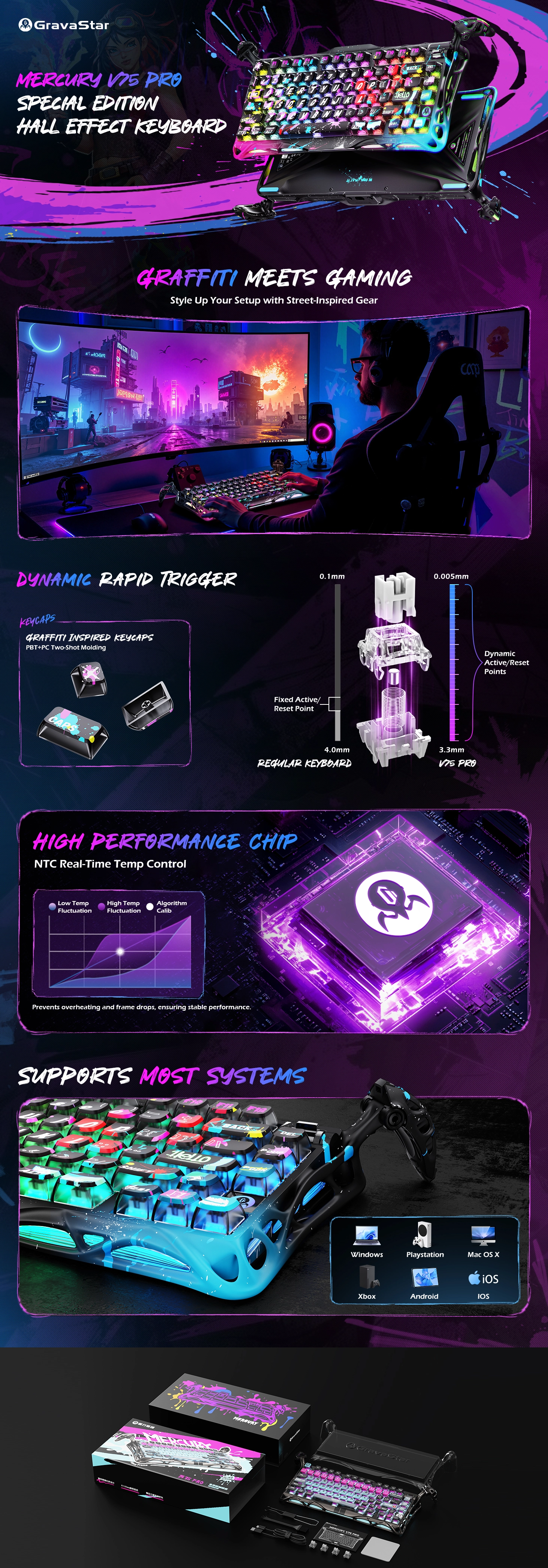 Teclado Gravastar Mercury V75 Pro He 75% (Gs V75 Pro_cg_blk) Grafiti Neon, Mecanico, Switch Hall Effect, Sondeo De 8000 Hz, Marco De Semialuminio, Rgb