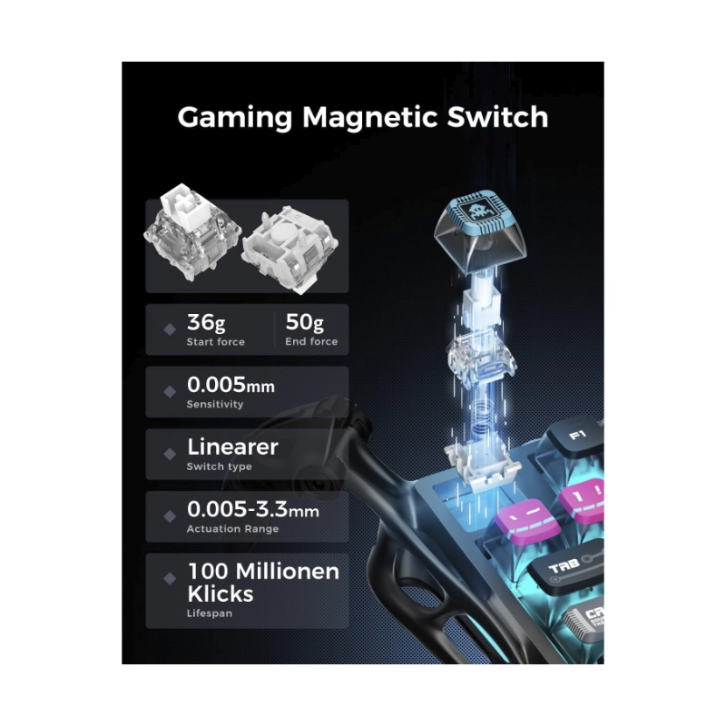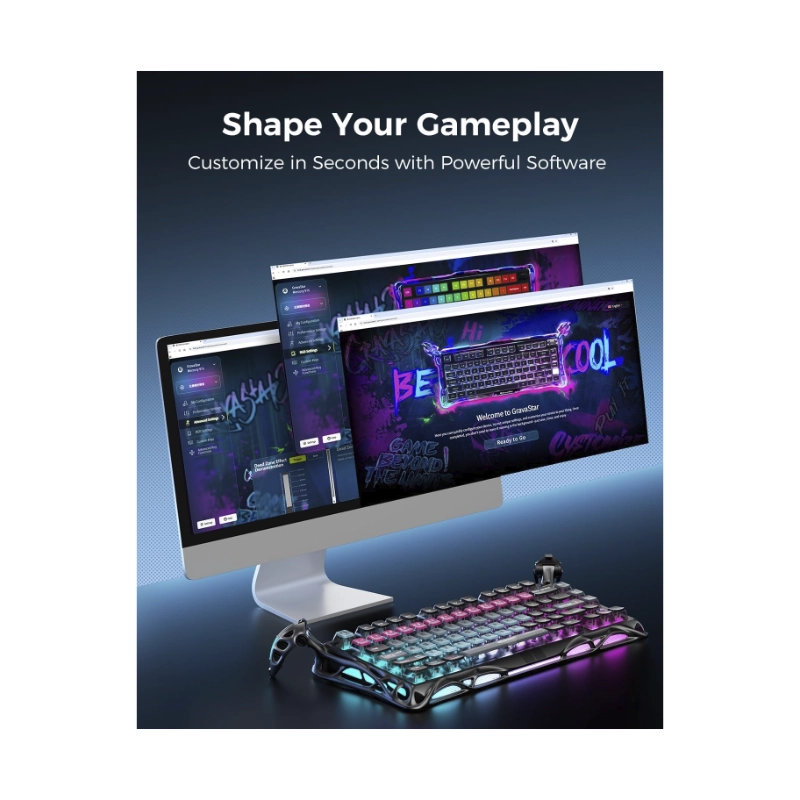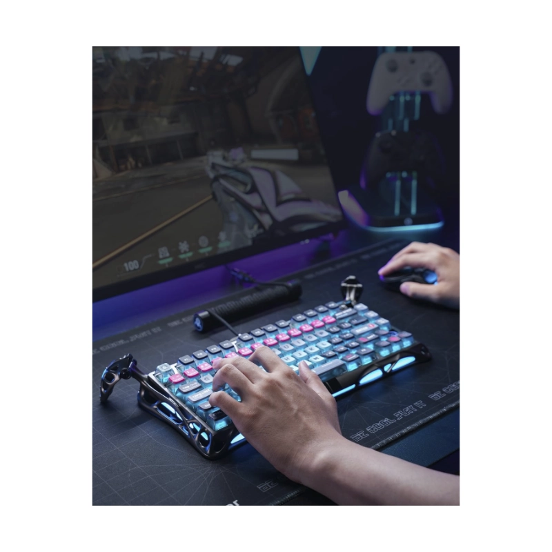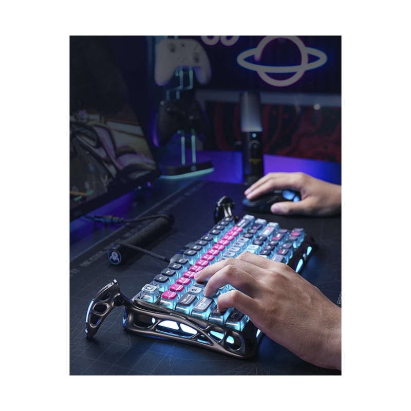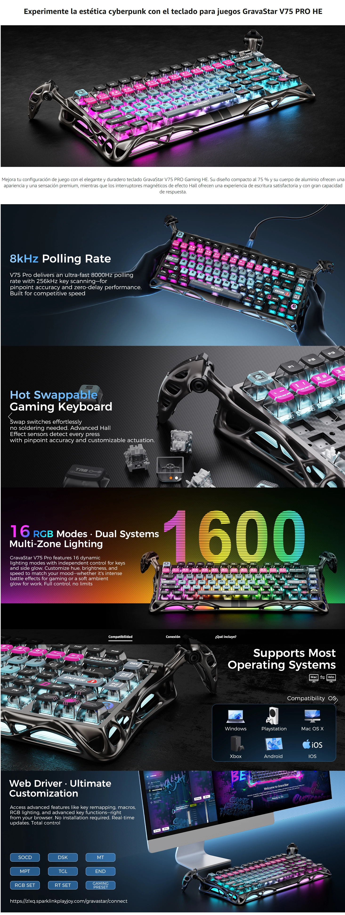 Teclado Gravastar Mercury V75 Pro He 75% (Gs V75 Pro_rm_egry) Estilo Cyberpunk, Mecanico, Switch Hall Effect, Sondeo De 8000 Hz, Marco De Semialuminio